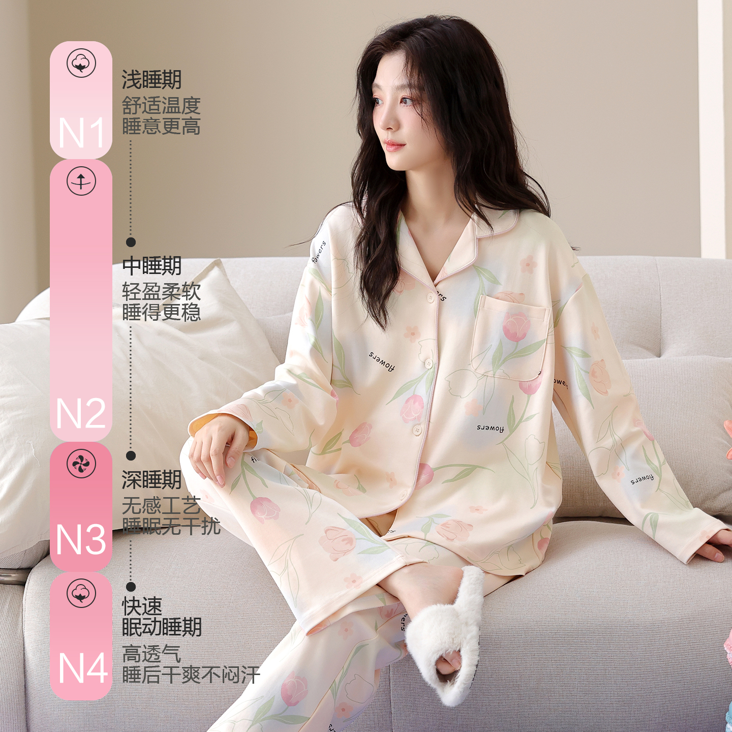 女士春天可外穿家居服套装 长袖 秋冬季 南极人纯棉睡衣女士2025新款