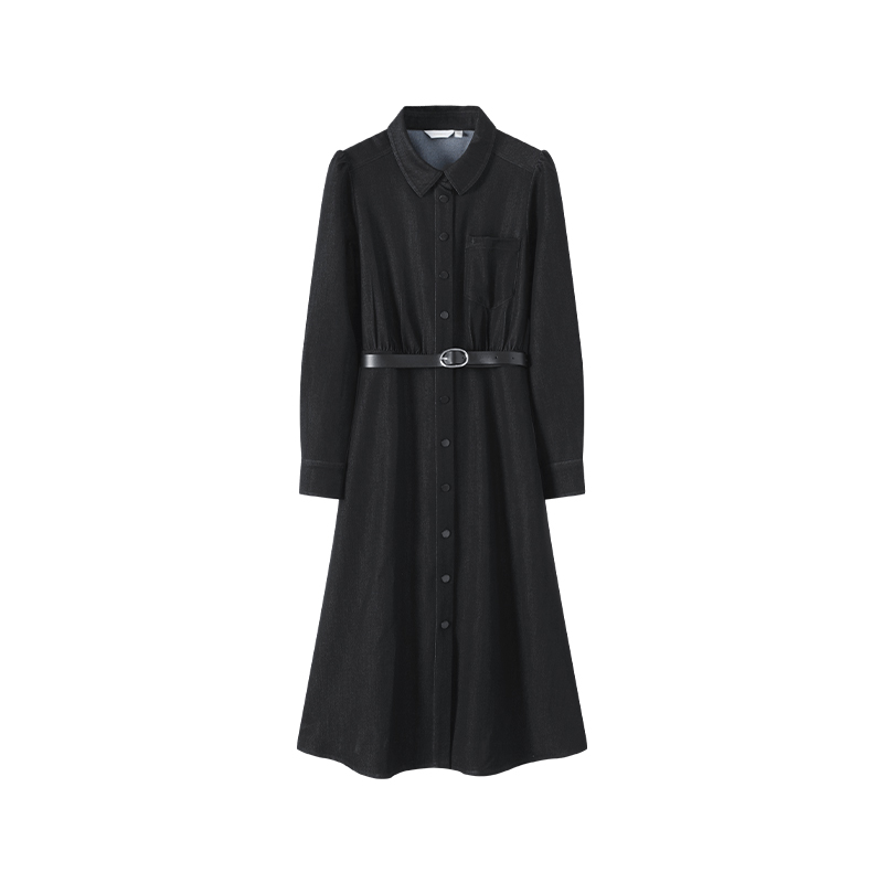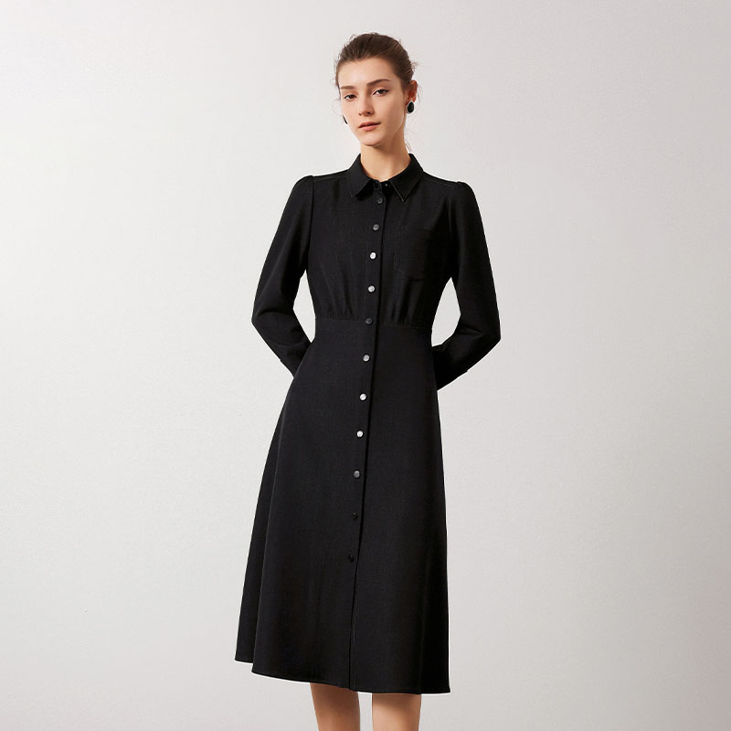 裙 休闲裙子衬衫 Navigare意大利小帆船黑色长袖 连衣裙女春秋新款