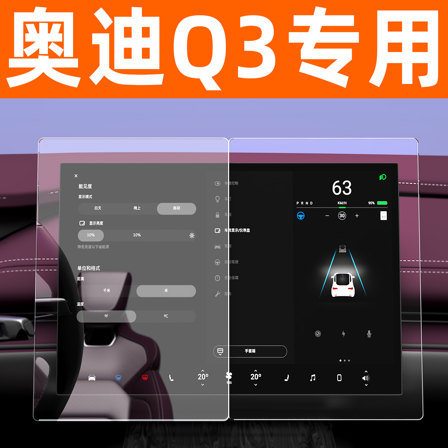 奥迪Q3屏幕钢化膜车机仪表汽车显示屏贴膜屏保中控导航大屏保护膜