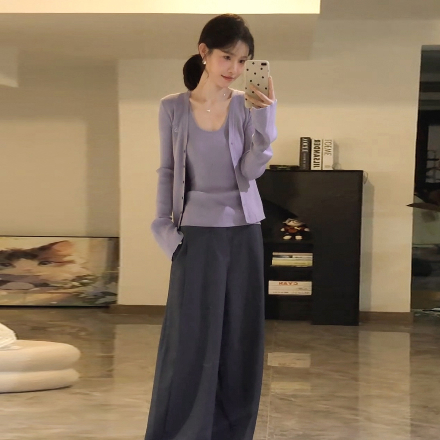 修身 2025新款 背心上衣两件套 外套女秋季 慵懒风设计感叠穿针织开衫