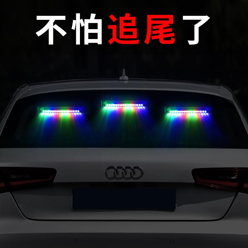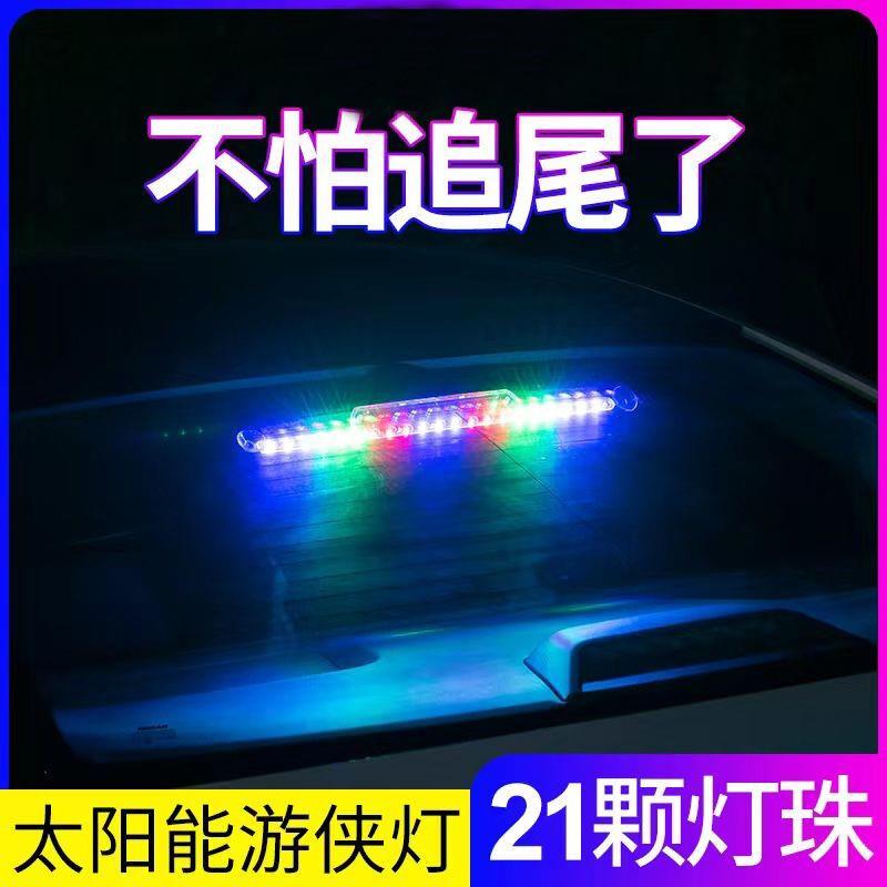 汽车太阳能防追尾警示灯LED免接线改装 饰车尾用防撞开道流水爆闪