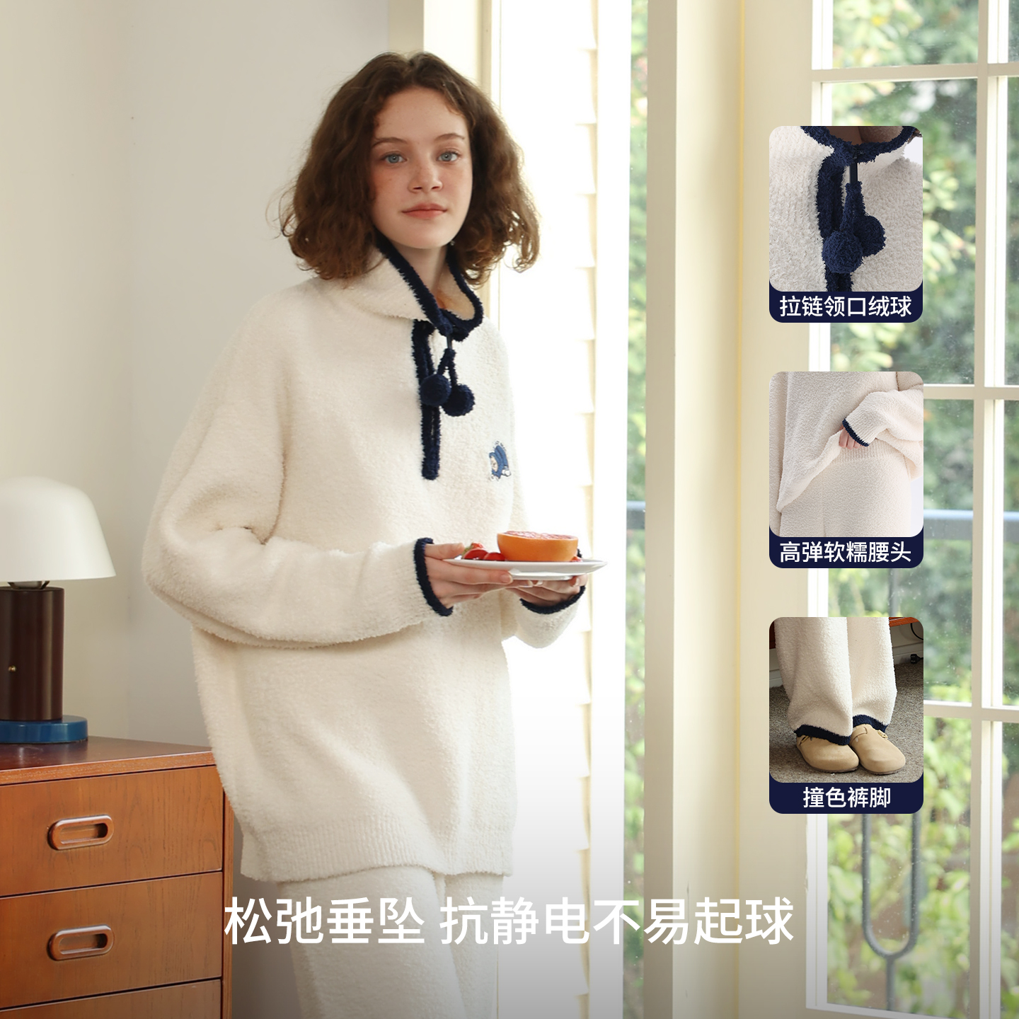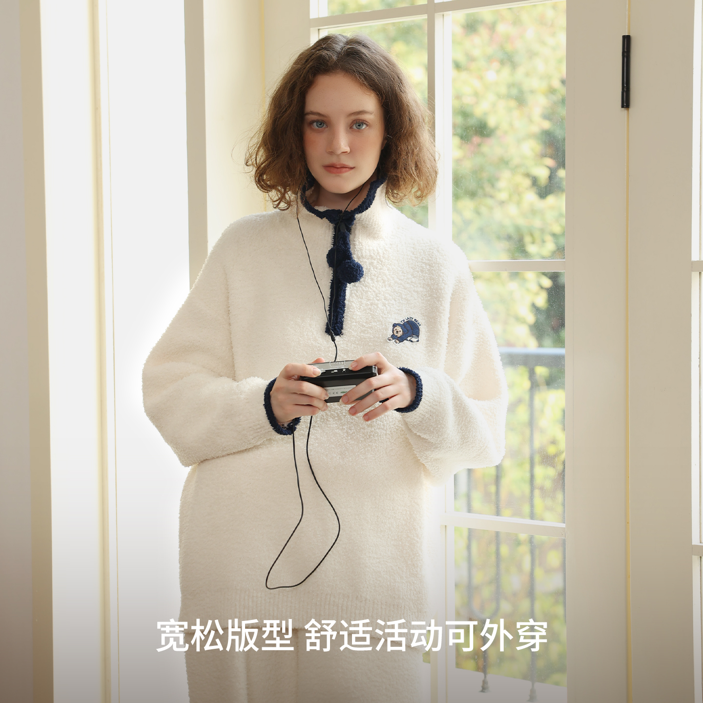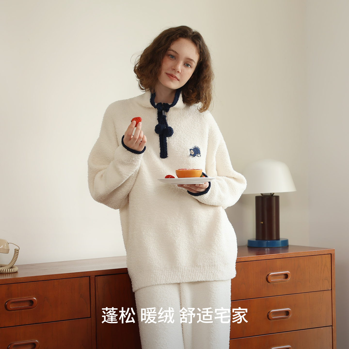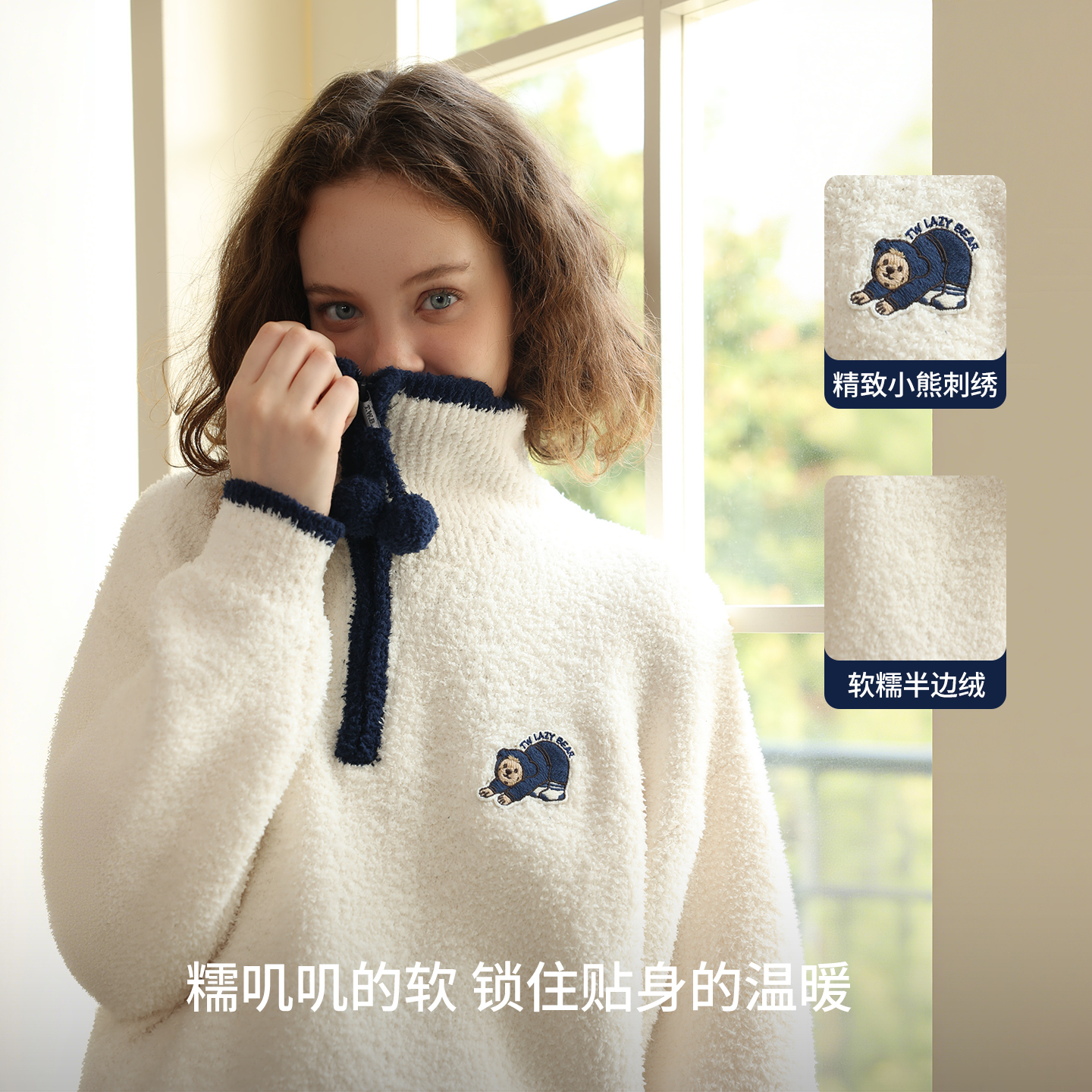 TeenieWeenie小熊女2025秋冬新款 睡衣加厚翻领拉链保暖家居服套装