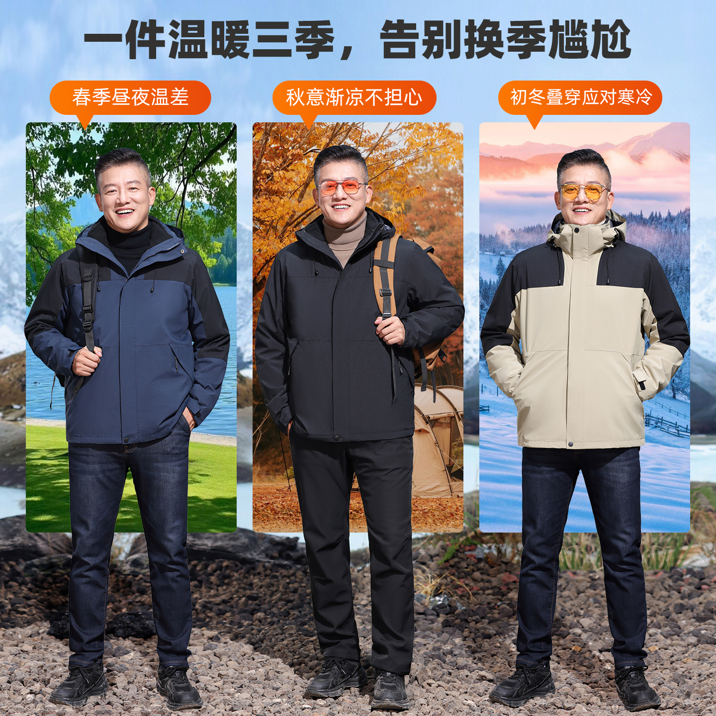 男款 爸爸秋冬季 三合一冲锋衣中老年加厚保暖套装 中年男士 外套新款