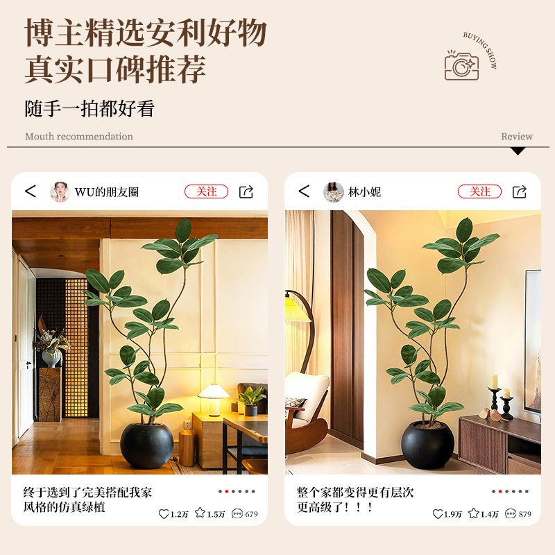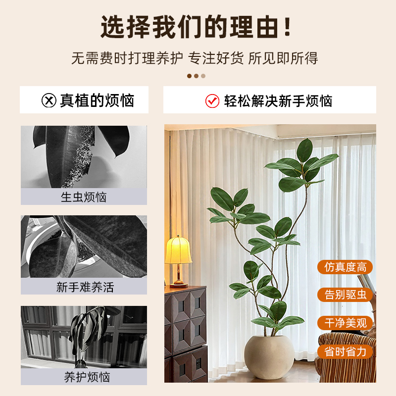 仿真假绿植装 饰黑金刚橡皮树室内大型落地盆栽摆件高端轻奢中古风