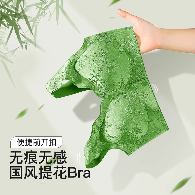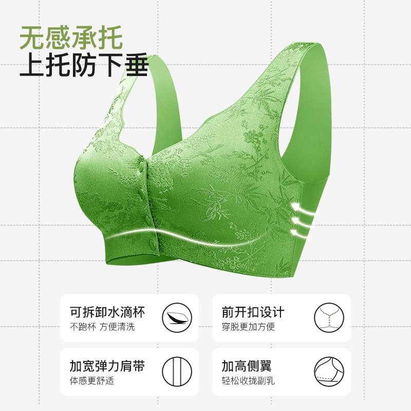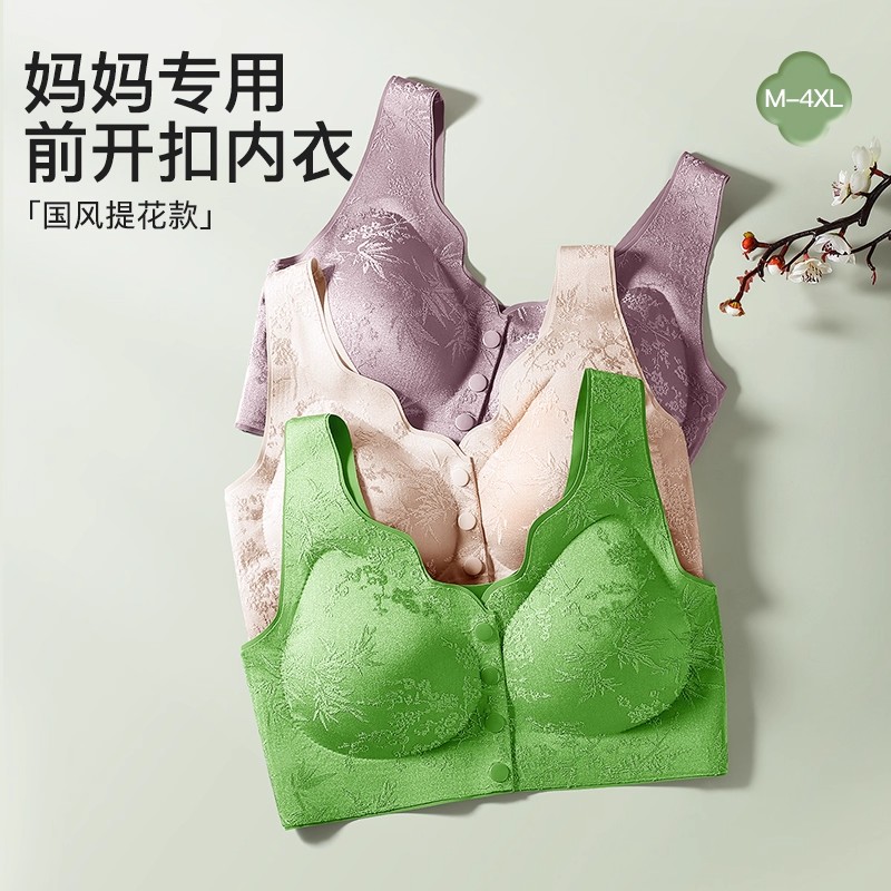 如吻黑天鹅国风浮雕妈妈内衣中老年无钢圈前扣文胸罩背心大码 新款