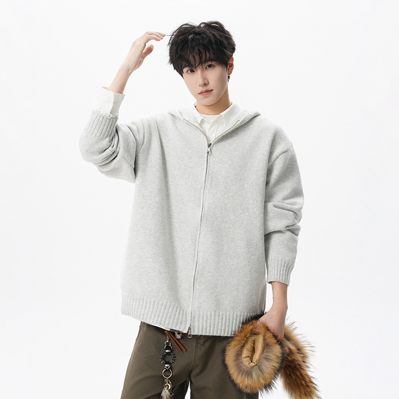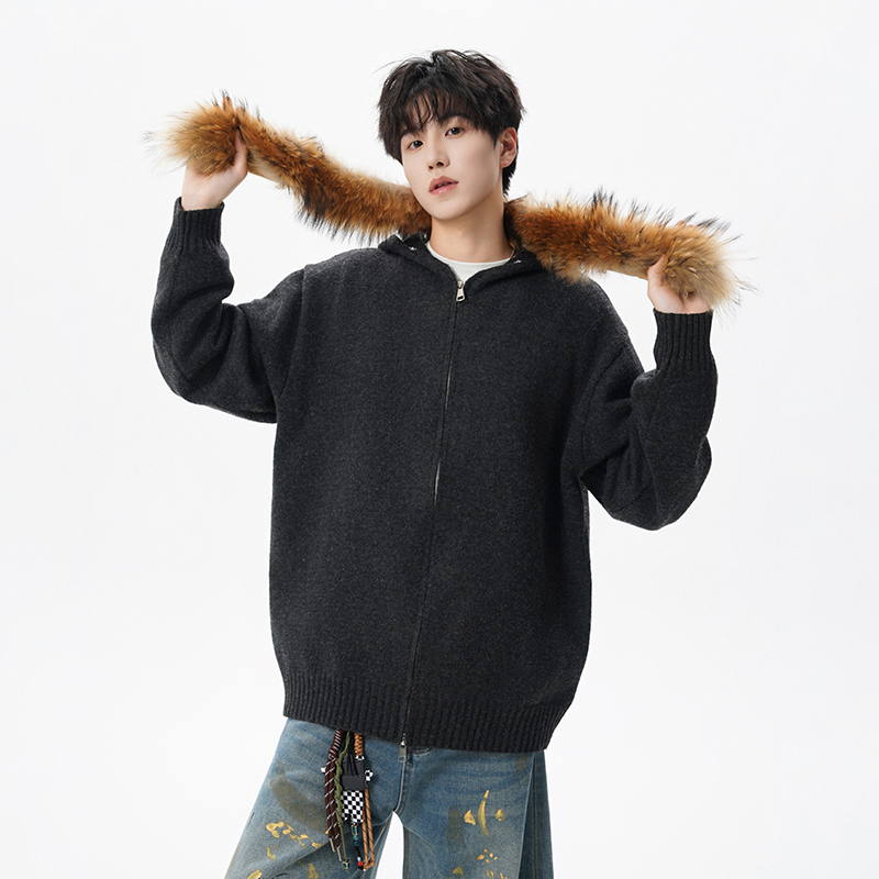 连帽羊毛针织衫 MTVO迈特优可拆卸毛领开衫 美式 秋冬季 毛衣外套男款