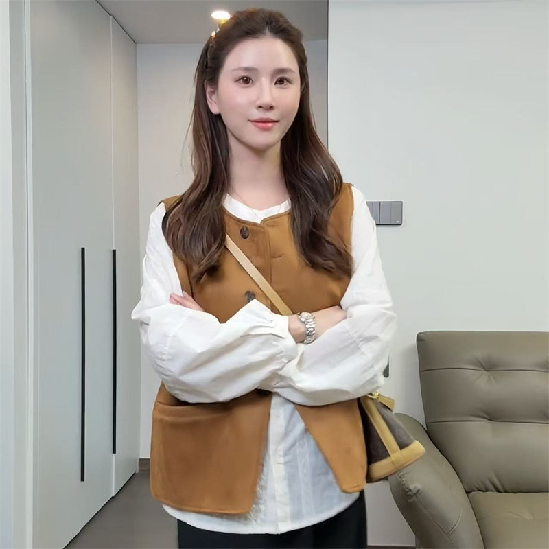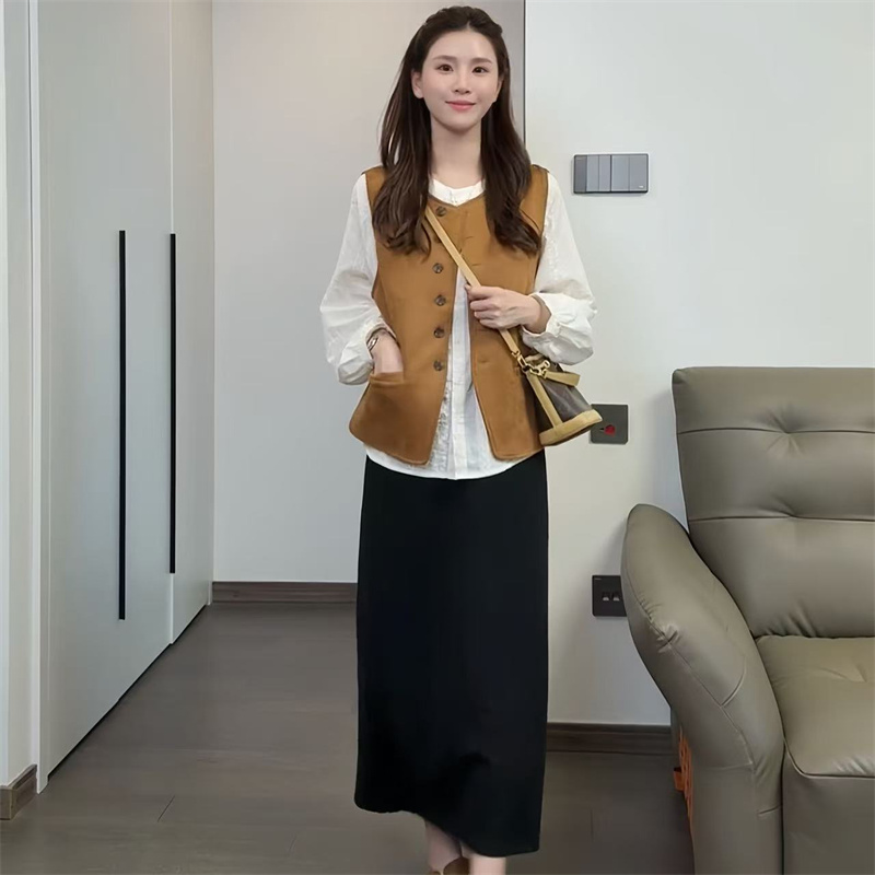美拉德高级圆领马甲外套休闲百搭显瘦气质半身裙套装 女2025早秋款