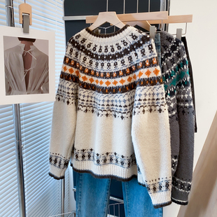 高级感上衣宽松打底针织衫 圆领100%纯山羊绒衫 女高端毛衣秋冬新款