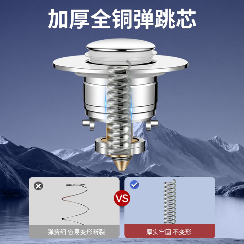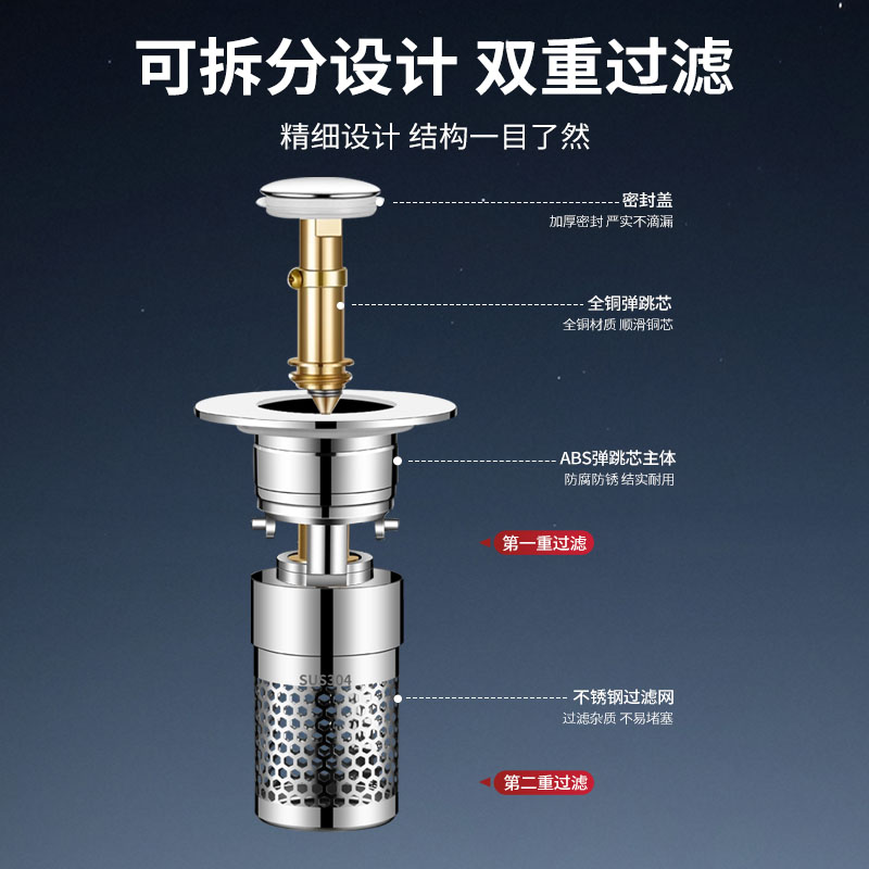 洗手盆漏水塞子按压式 下水器弹跳芯卫生间通用洗脸池过滤网防头发