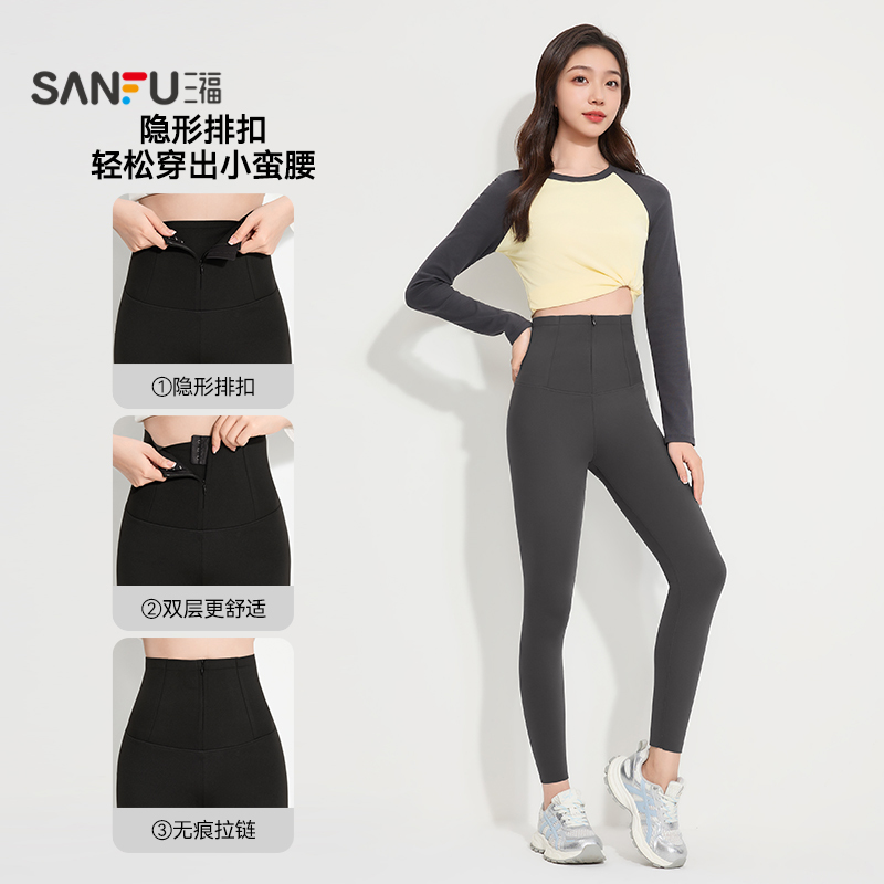 高腰保暖裤 芬腾打底裤 女士内穿发热棉毛裤 加绒德紧身秋裤 女秋冬季