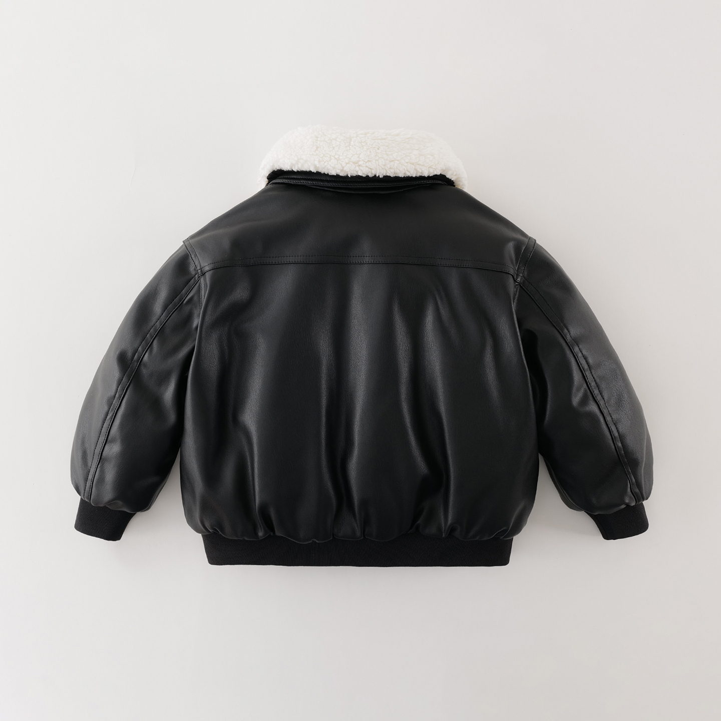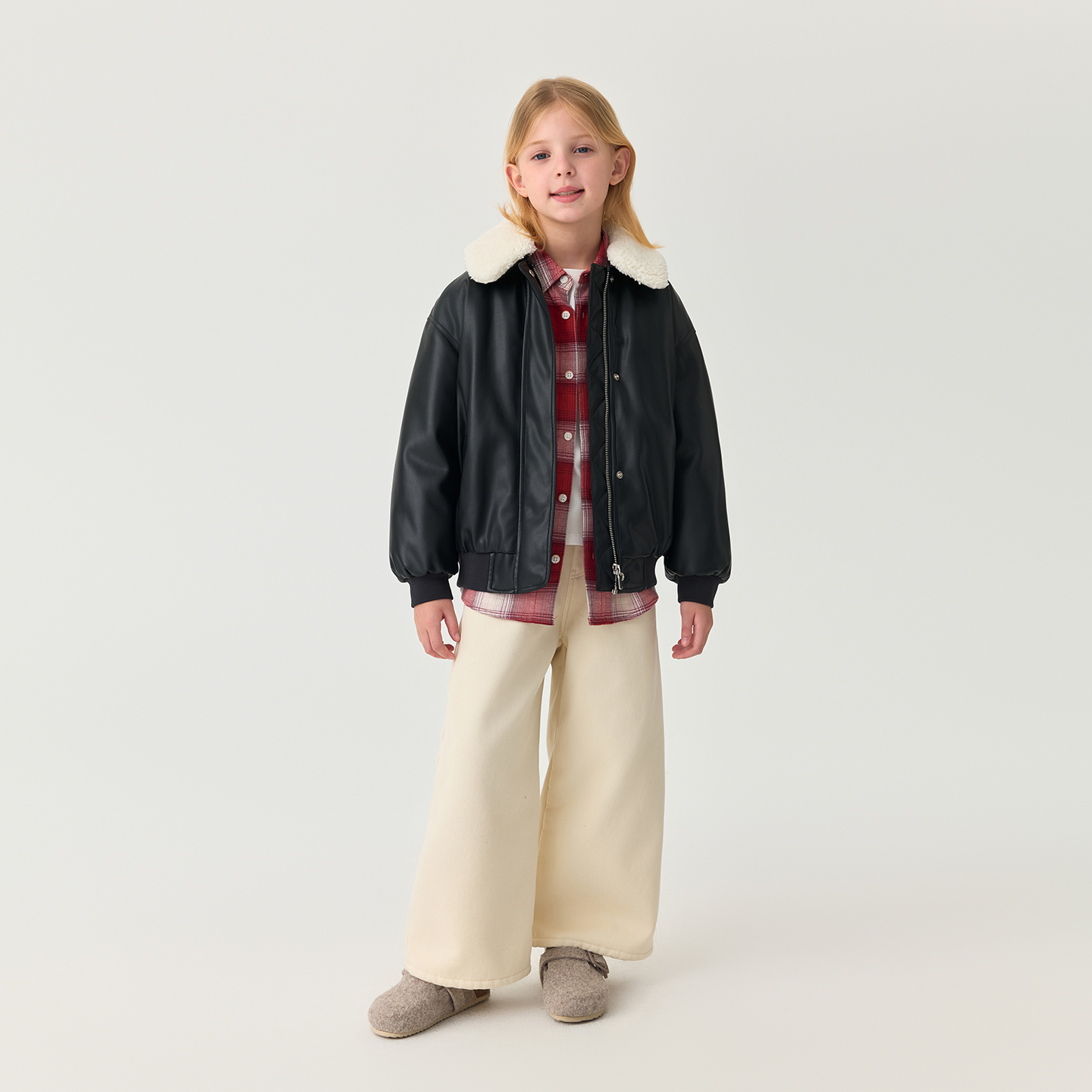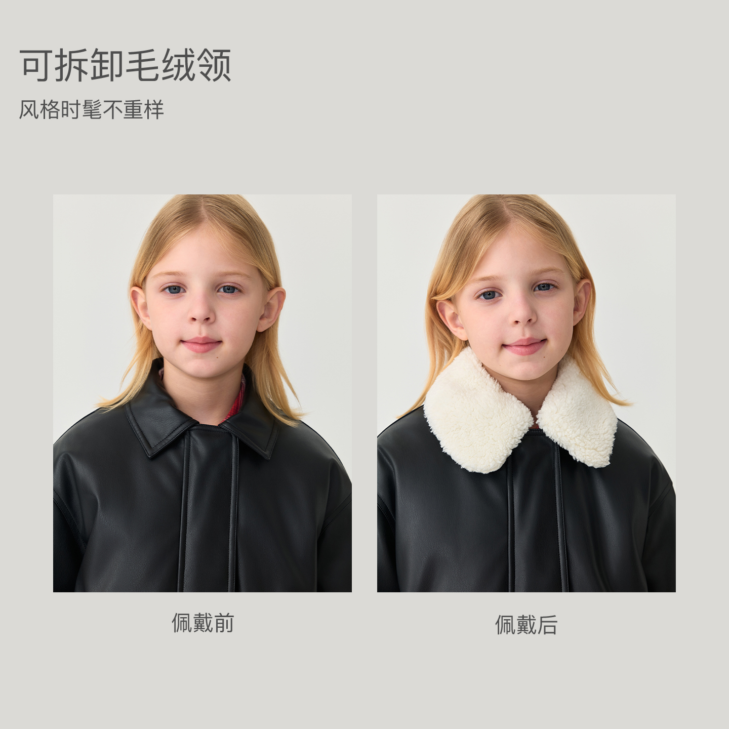 儿童夹克外套冬装 马克珍妮女童甜酷夹棉皮衣 551560 可拆卸毛领