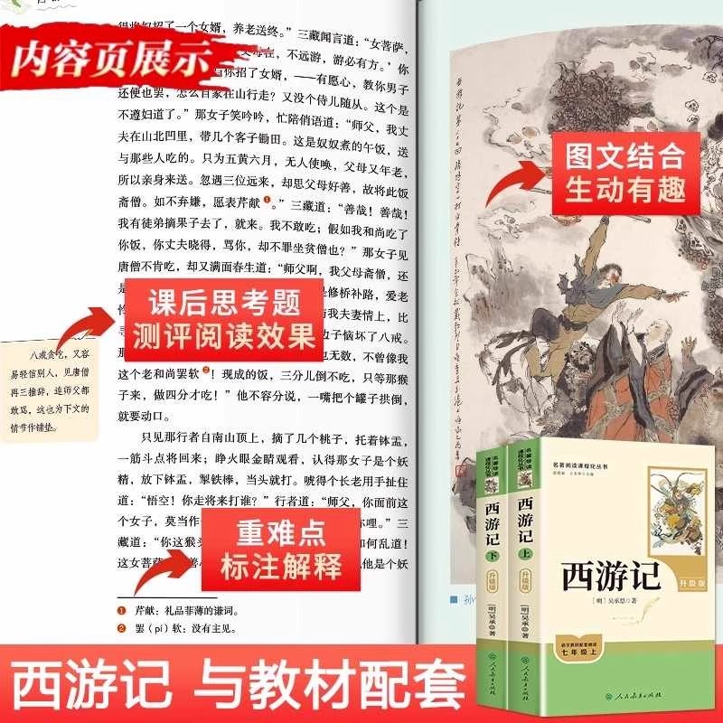 西游记朝花夕拾鲁迅原著正版 升级版 完整版 人民教育出版 七年级上册必课外阅读书籍名著镜花缘考点 人教版 社初中生版 新版
