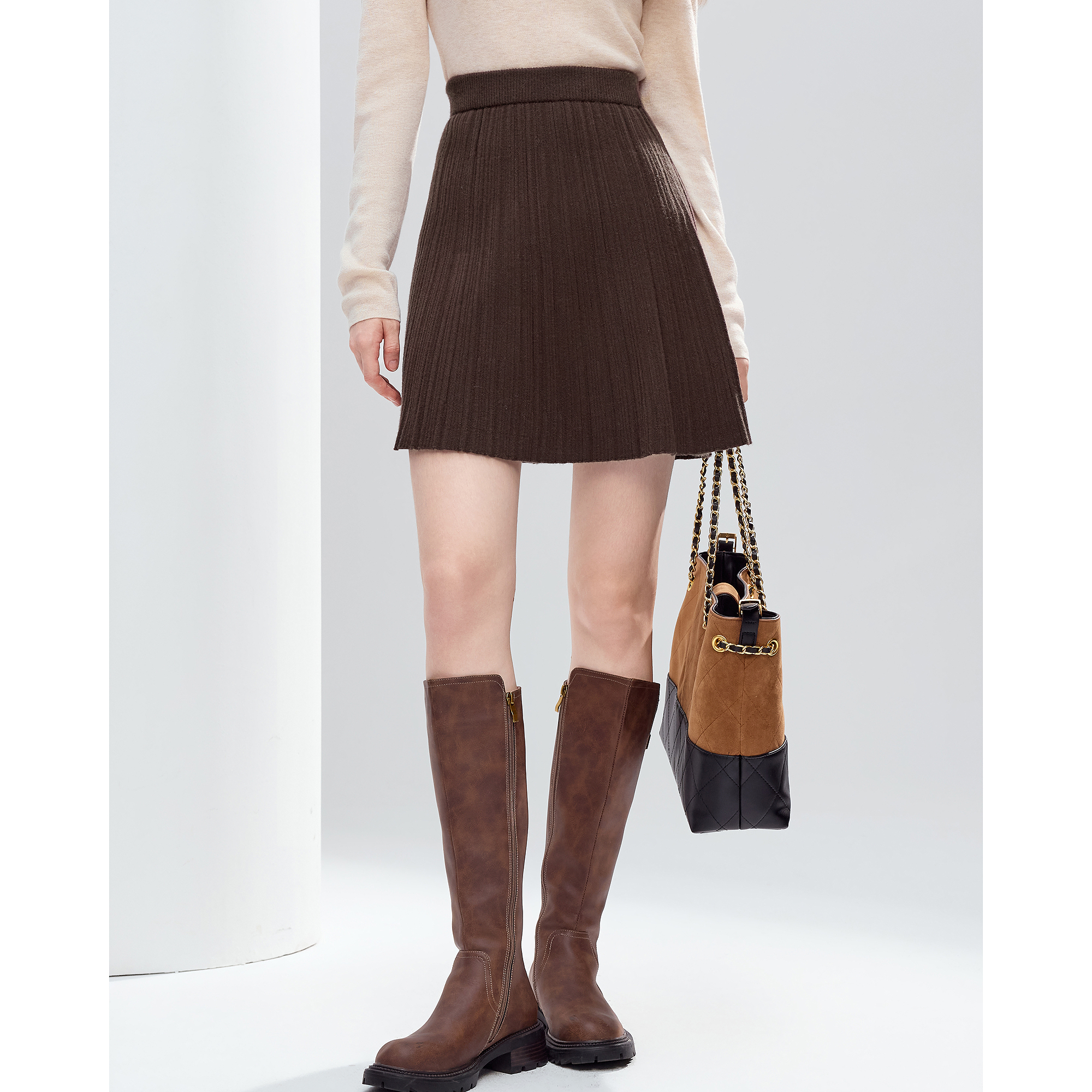 新品 气质通勤2025秋季 羊毛a字毛织半身裙中长款 OCHIRLY欧时力