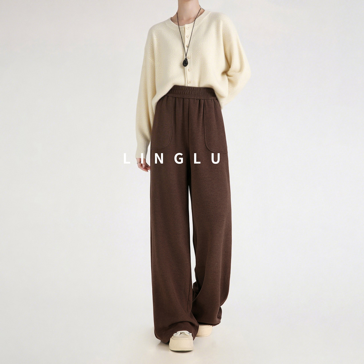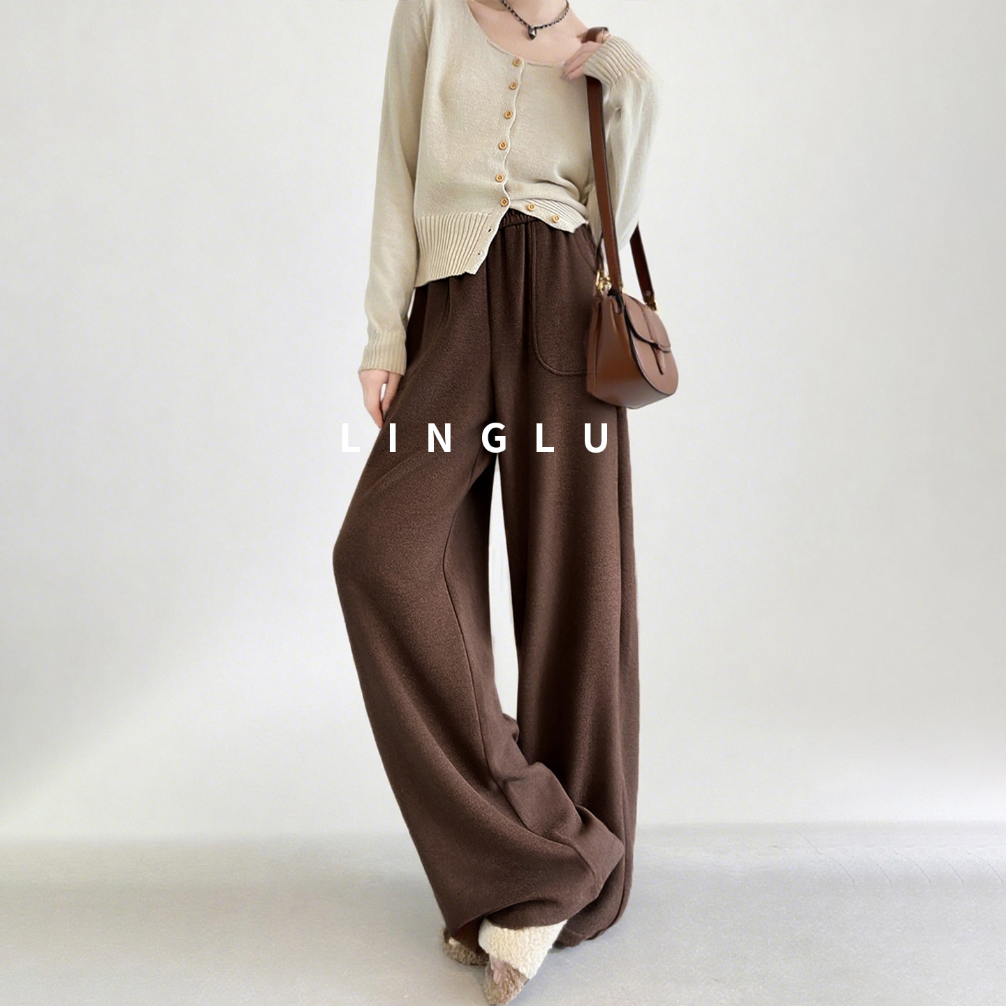 高级宽松bf慵懒垂感直筒加绒休闲阔腿裤 2025新款 子女春秋季 糯米裤