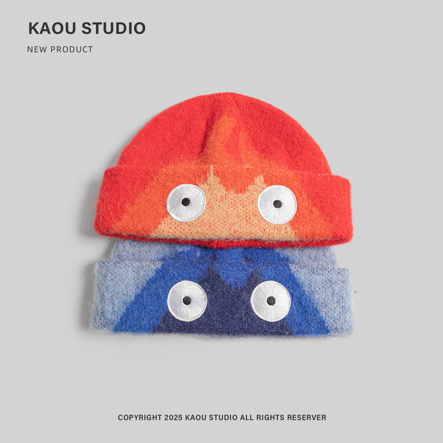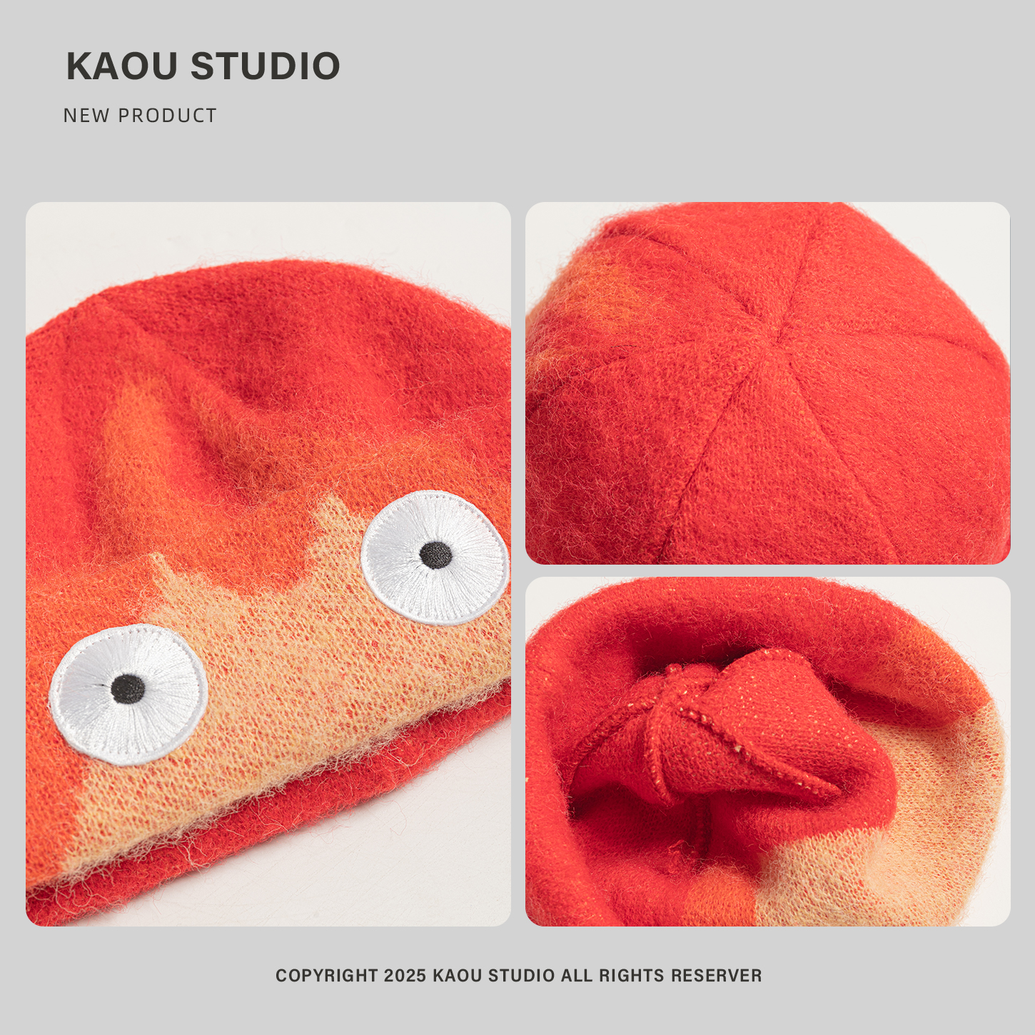 可爱卡通火焰毛绒帽子女韩版 滑雪毛线地主帽男 时髦保暖针织帽冬季