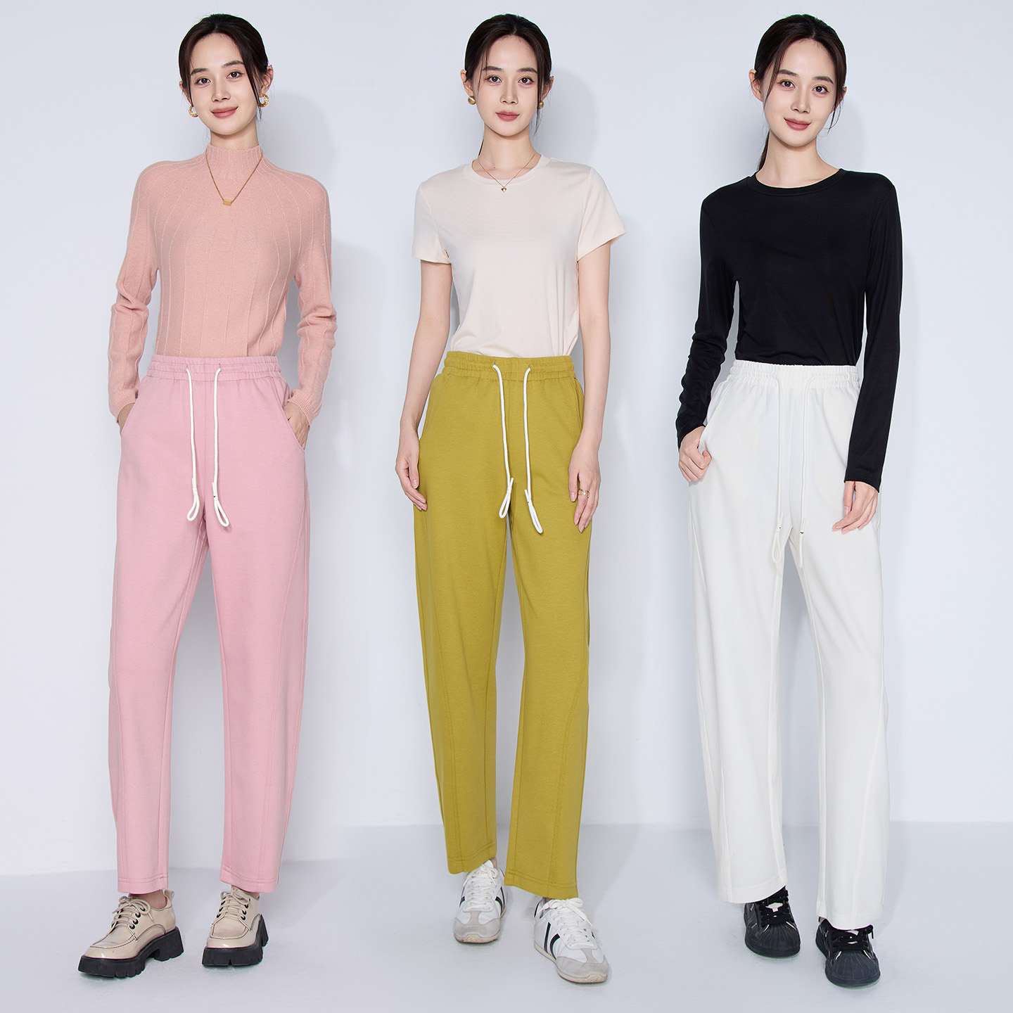高级宽松bf慵懒垂感直筒加绒休闲阔腿裤 2025新款 子女春秋季 糯米裤