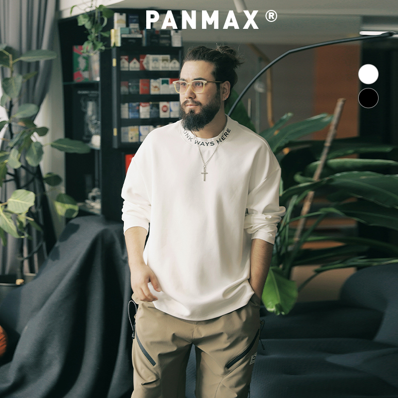 加大纯色上衣男长袖 明线撞色小高领打底衫 T恤 男装 PANMAX潮牌大码