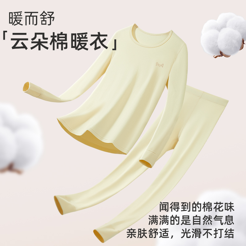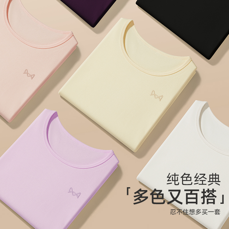 女士纯棉套装 冬季 薄款 全棉毛衫 保暖内衣 内穿打底套装 猫人秋衣秋裤