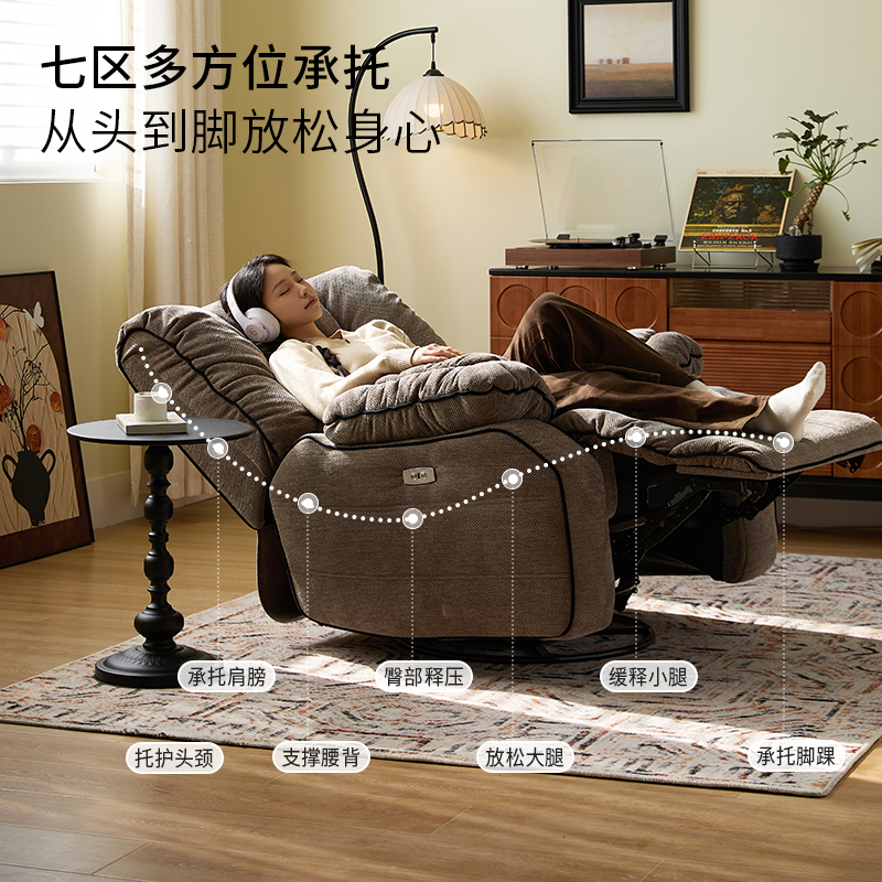 索菲亚懒人电动布艺沙发美式 风功能单椅云朵可躺椅单人沙发A003