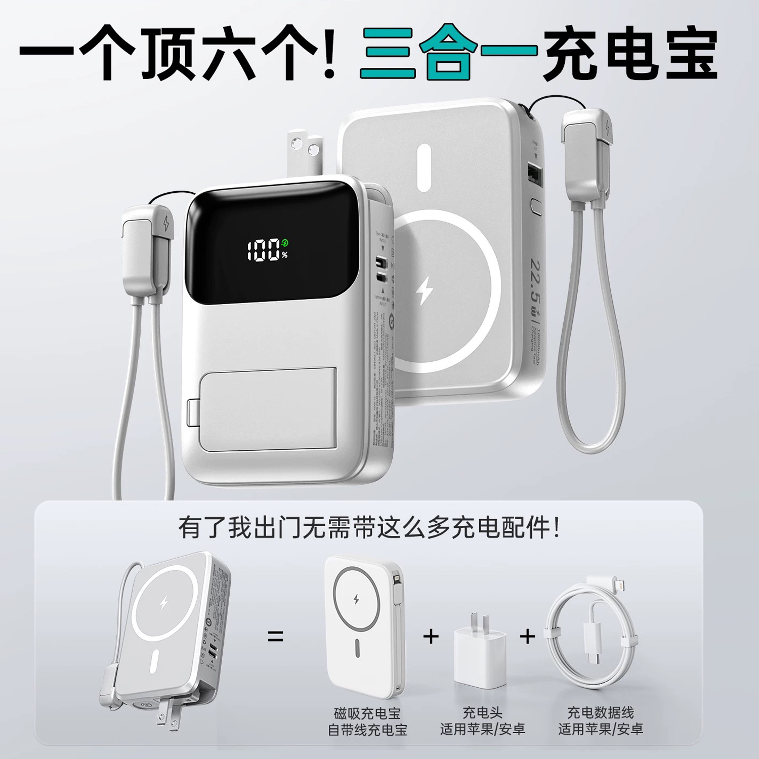 充电宝自带线插头AC超大容量磁吸无线移动电源适用苹果专用华为小米 Sy20000毫安2025新款 3c认证可上飞机