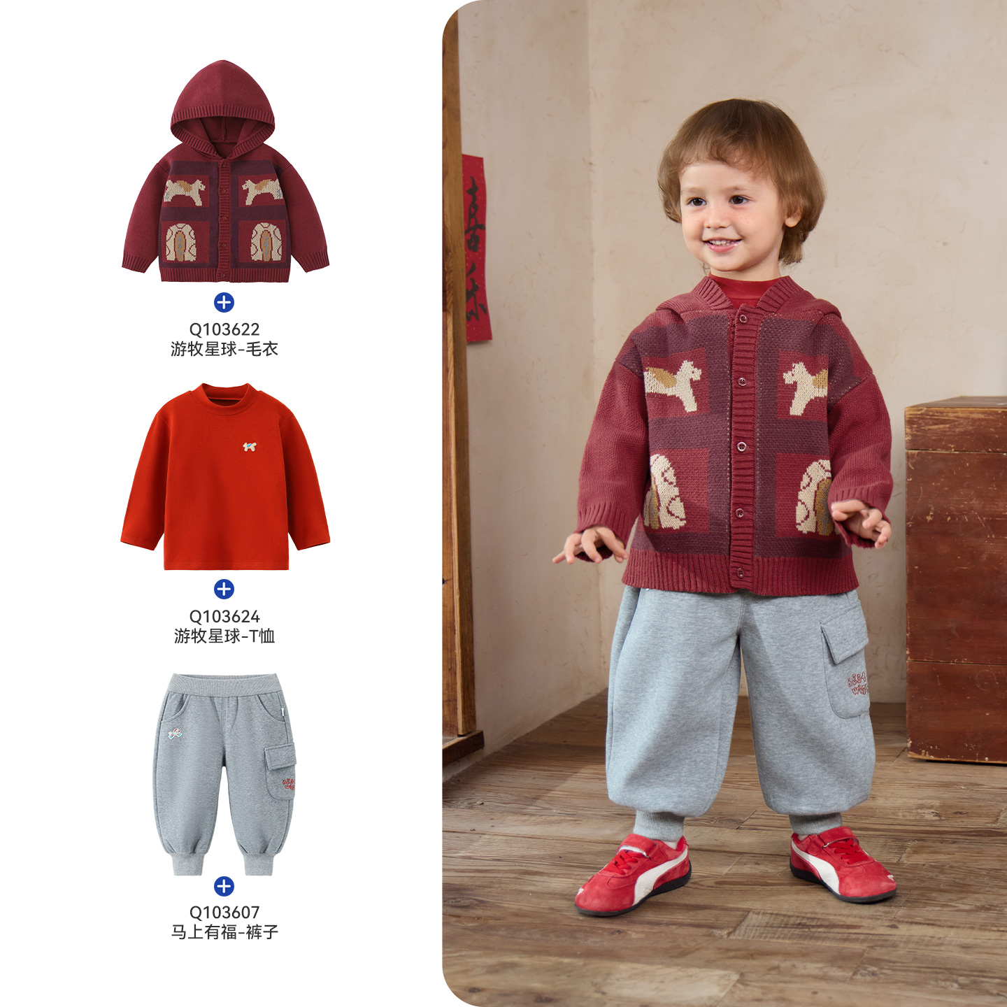 冬款 齐齐熊宝宝毛衣开衫 男童连帽外套儿童新年红色款 抗静电起球