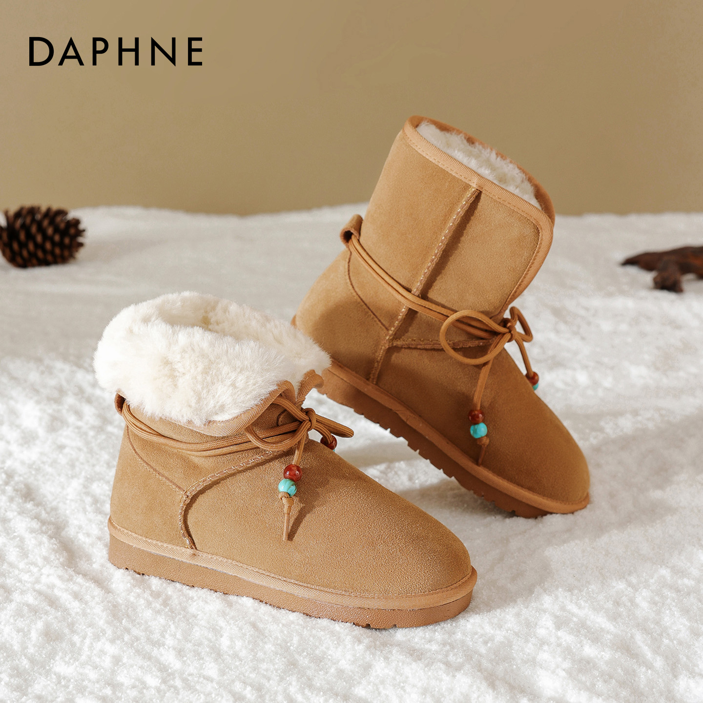 两穿毛毛厚底短靴子 加绒保暖东北棉鞋 达芙妮雪地靴女2025新款 冬季