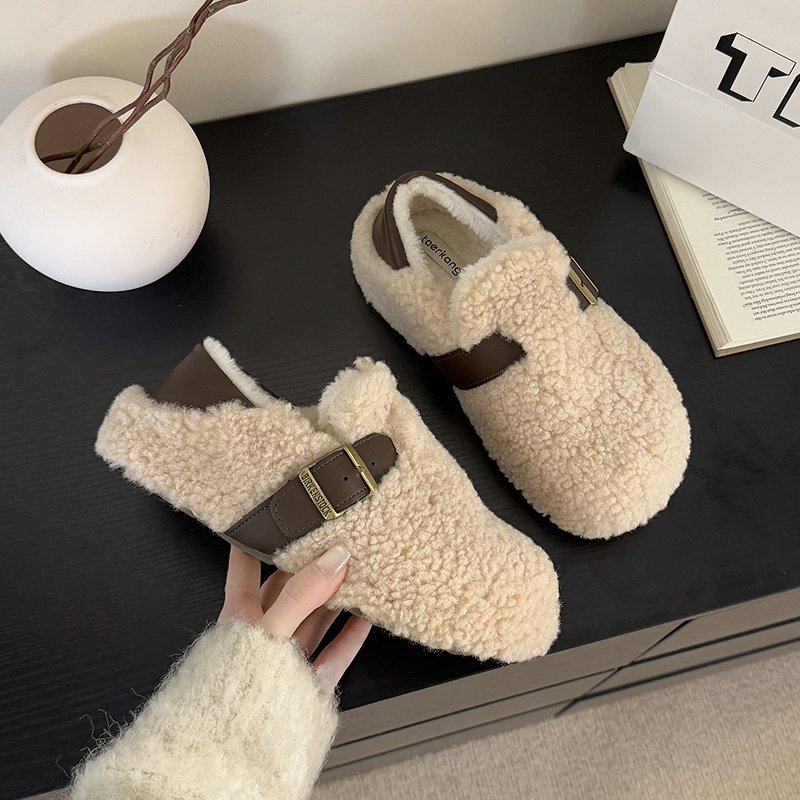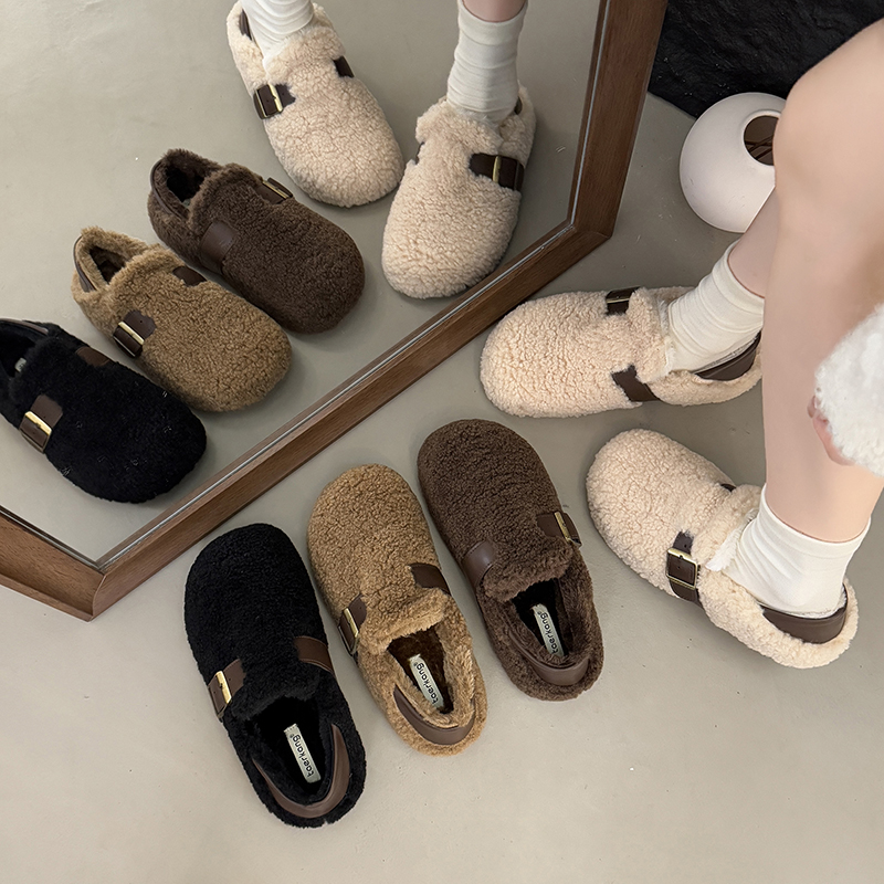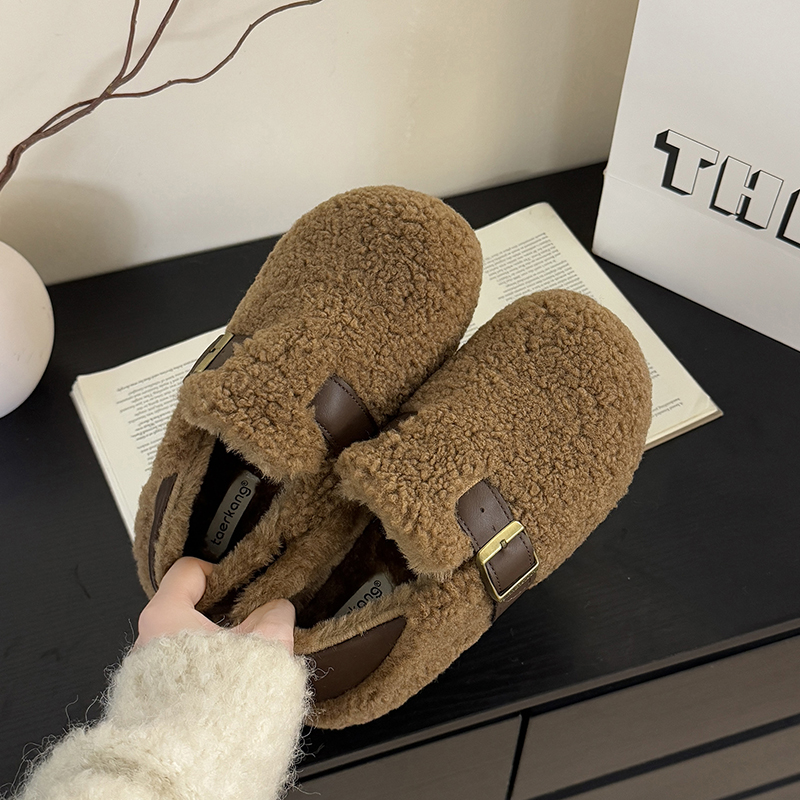 秋冬加绒雪地靴一脚蹬豆豆棉鞋 网红毛毛单鞋 女外穿保暖2025新爆款