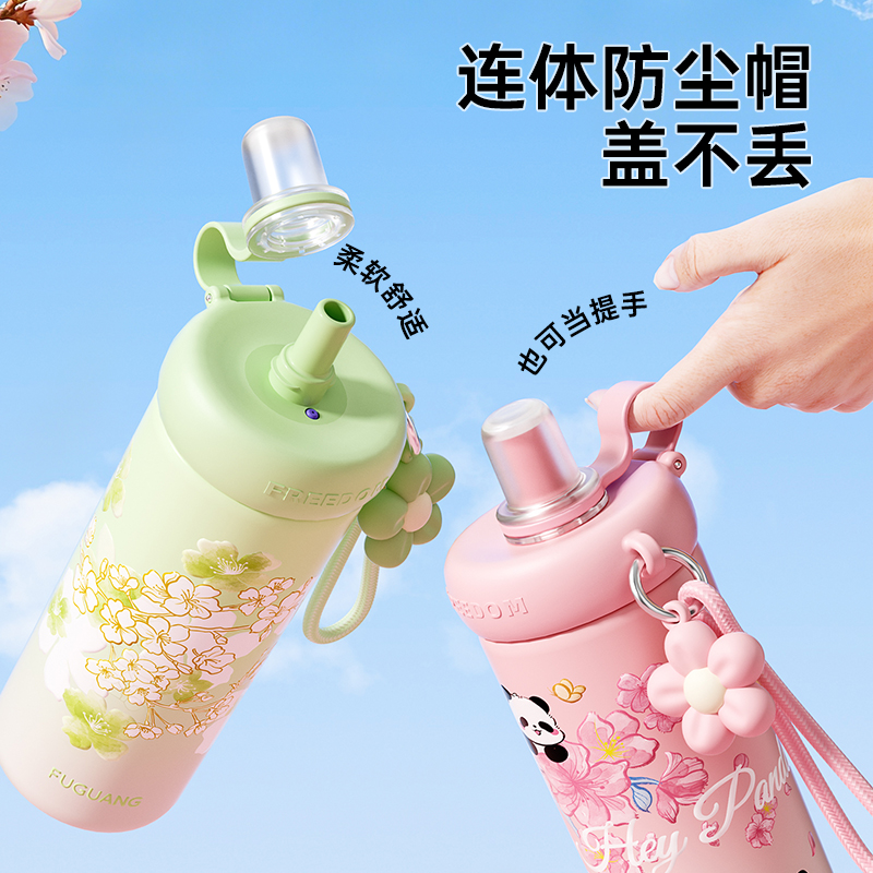 富光一盖双饮保温杯新款 水杯儿童上学专用女生高颜值吸管杯子男孩