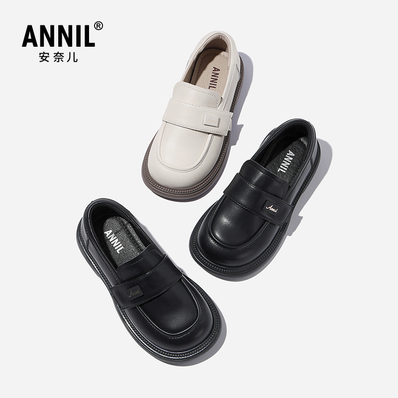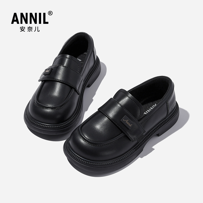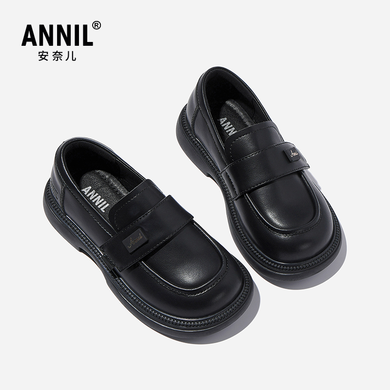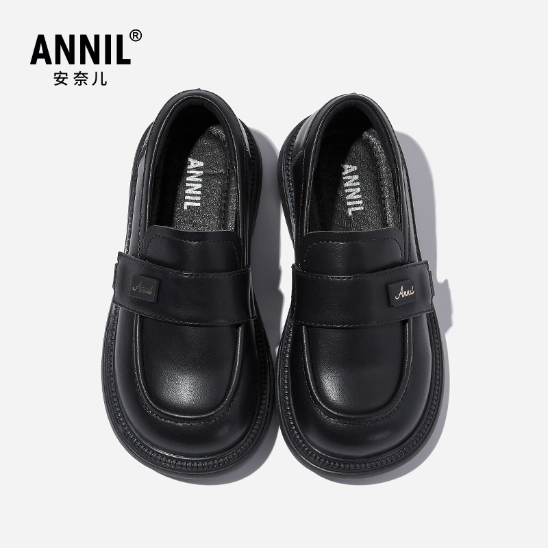 儿童学生软底单鞋 春秋新款 子 黑色亮皮公主鞋 annil安奈儿女童皮鞋