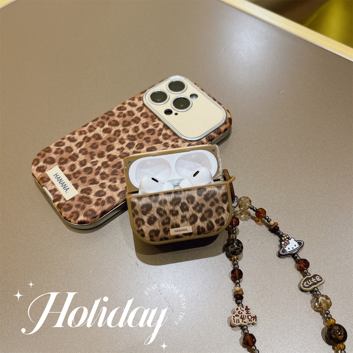 秋冬复古豹纹苹果Airpodspro三代手机壳17promax套装 适用于airpods4代保护壳皮质软壳mate70pro保护套pro2代