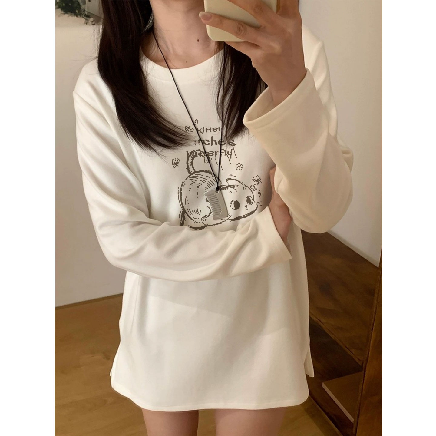 中长款 长袖 加绒打底衫 秋冬季 t恤上衣遮屁股洋气 t恤女2025新款