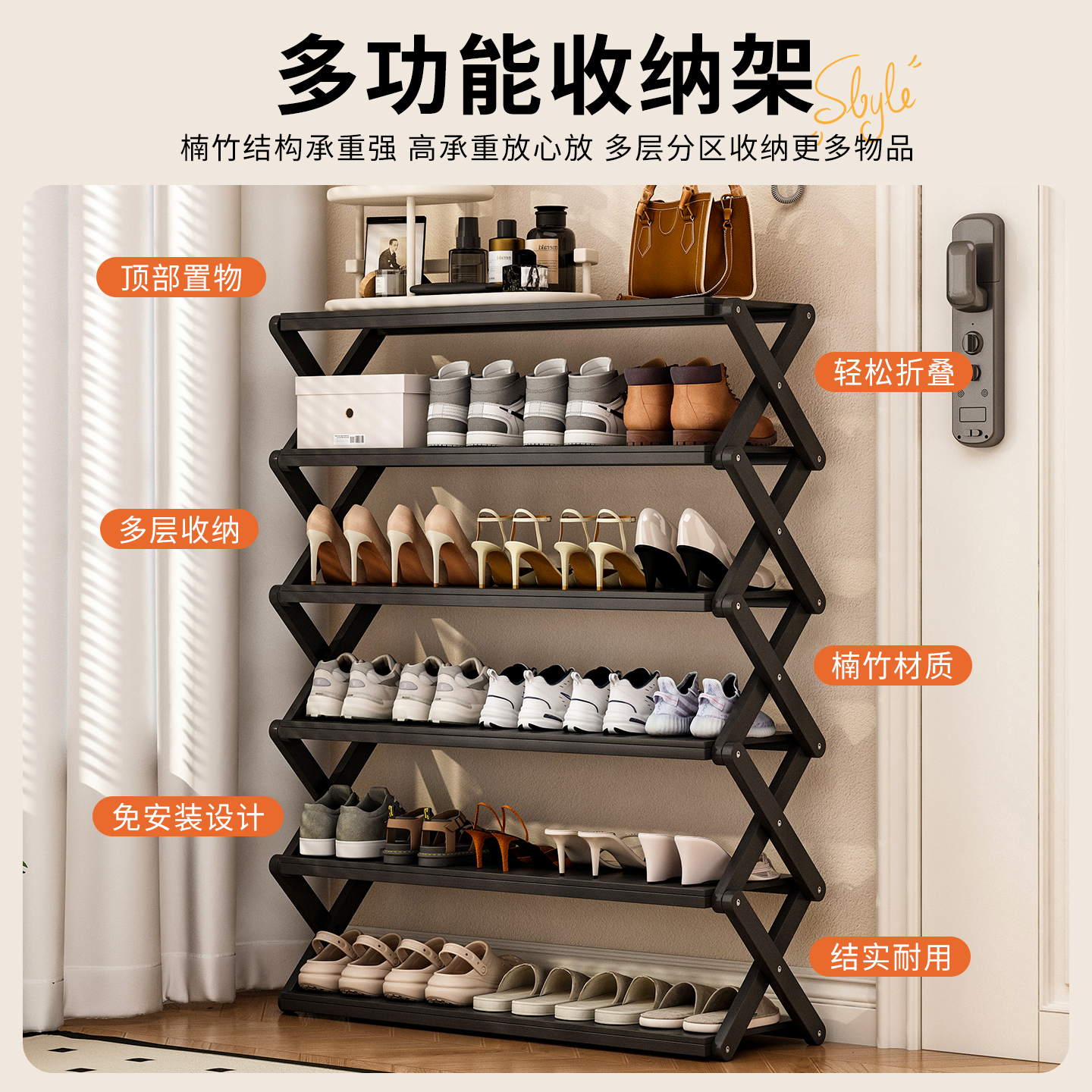 竹收纳小窄入鞋 新款 柜木多层置物 架子简易门口室内家用2025爆款 鞋