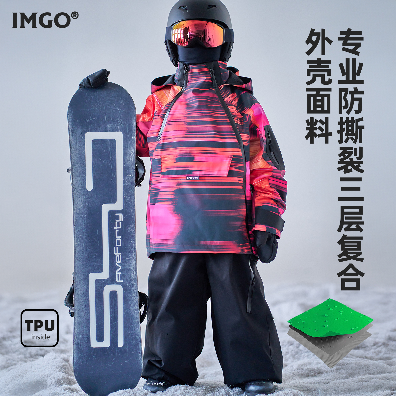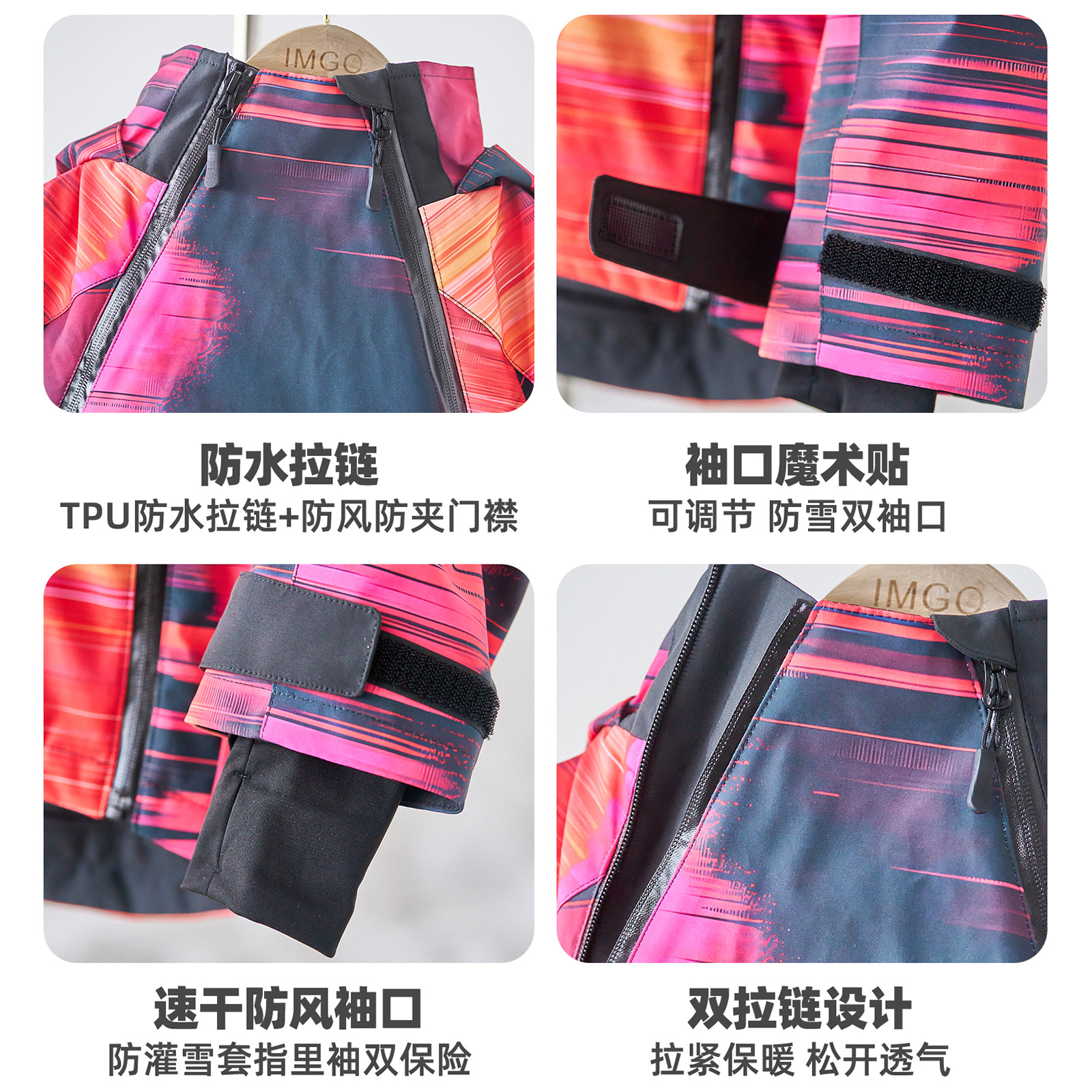 3L防风防水滑雪衣裤 IMGO儿童滑雪服25新款 套装 未来感红色雪服