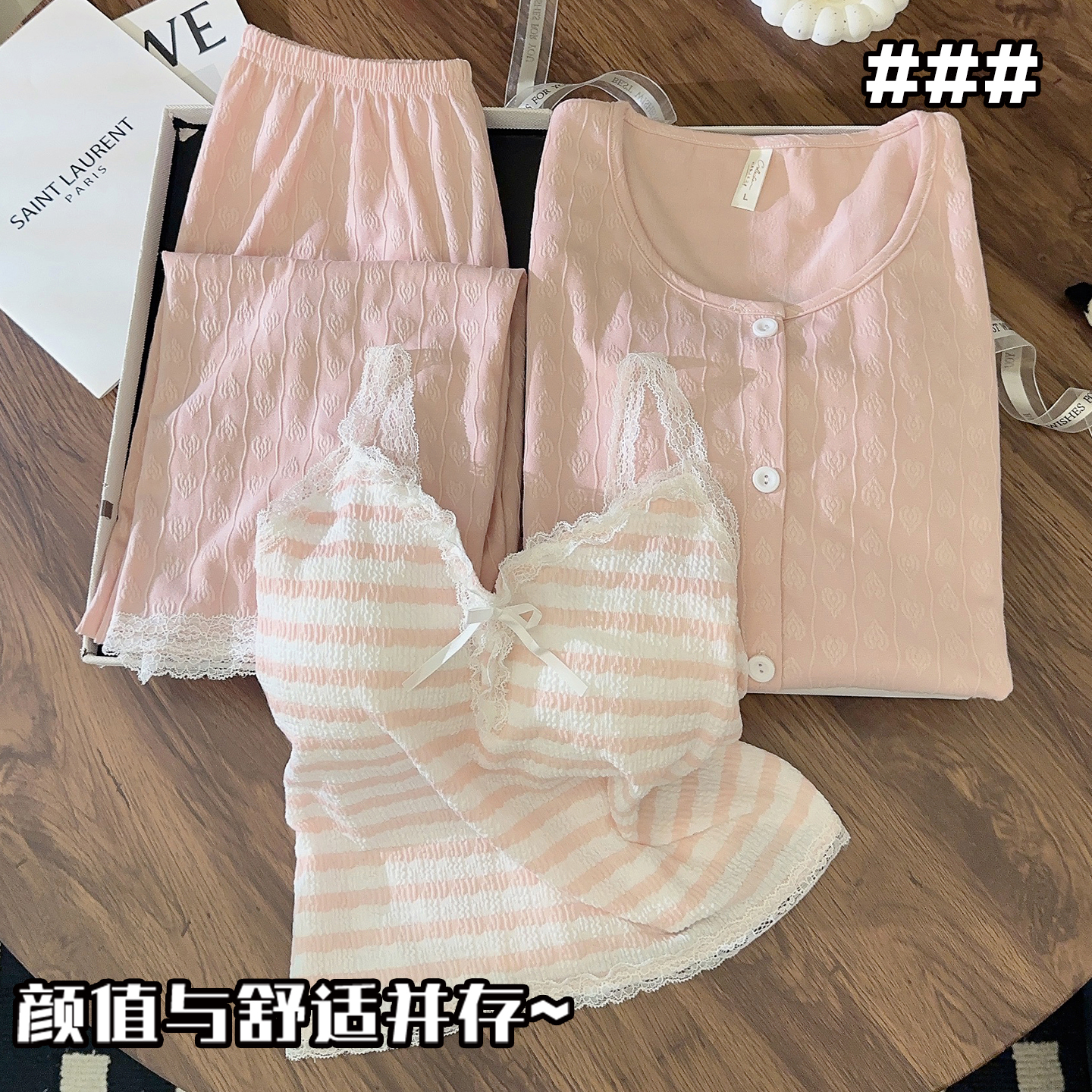 2025新款 套装 家居服可外穿 带胸垫长袖 都市丽人纯棉睡衣女春夏秋款