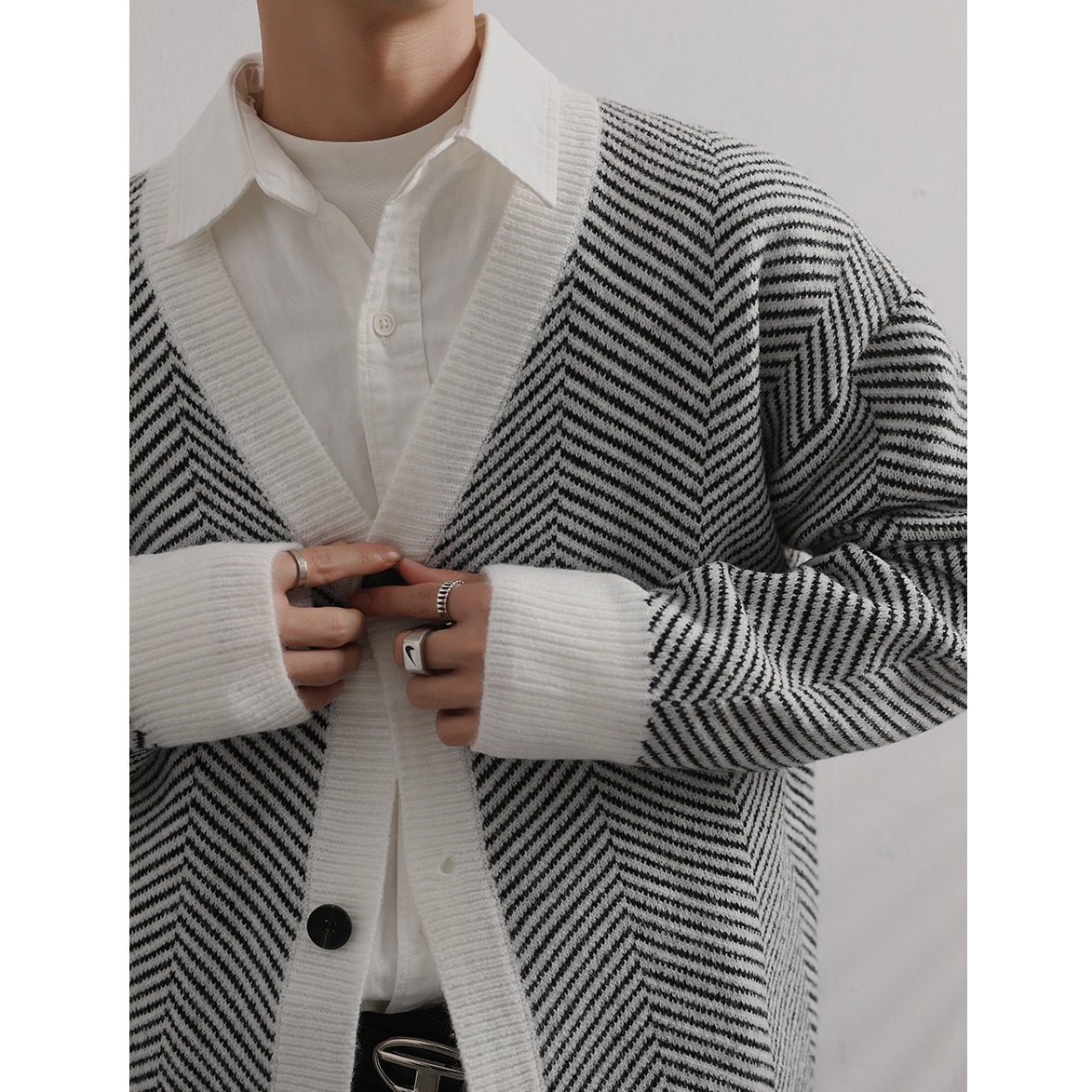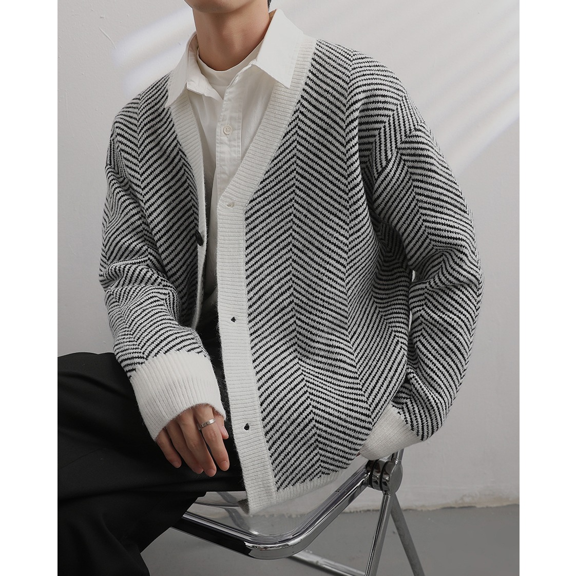 外套 针织衫 韩系cleanfit百搭V领开衫 毛衣男潮流慵懒风高级感秋季