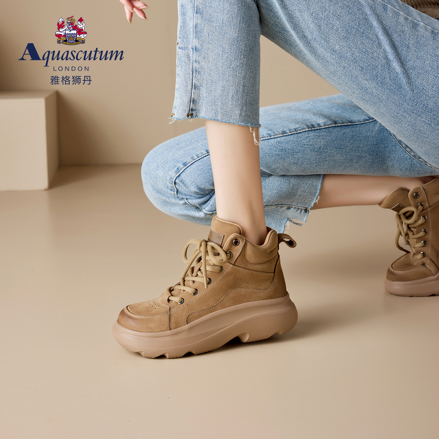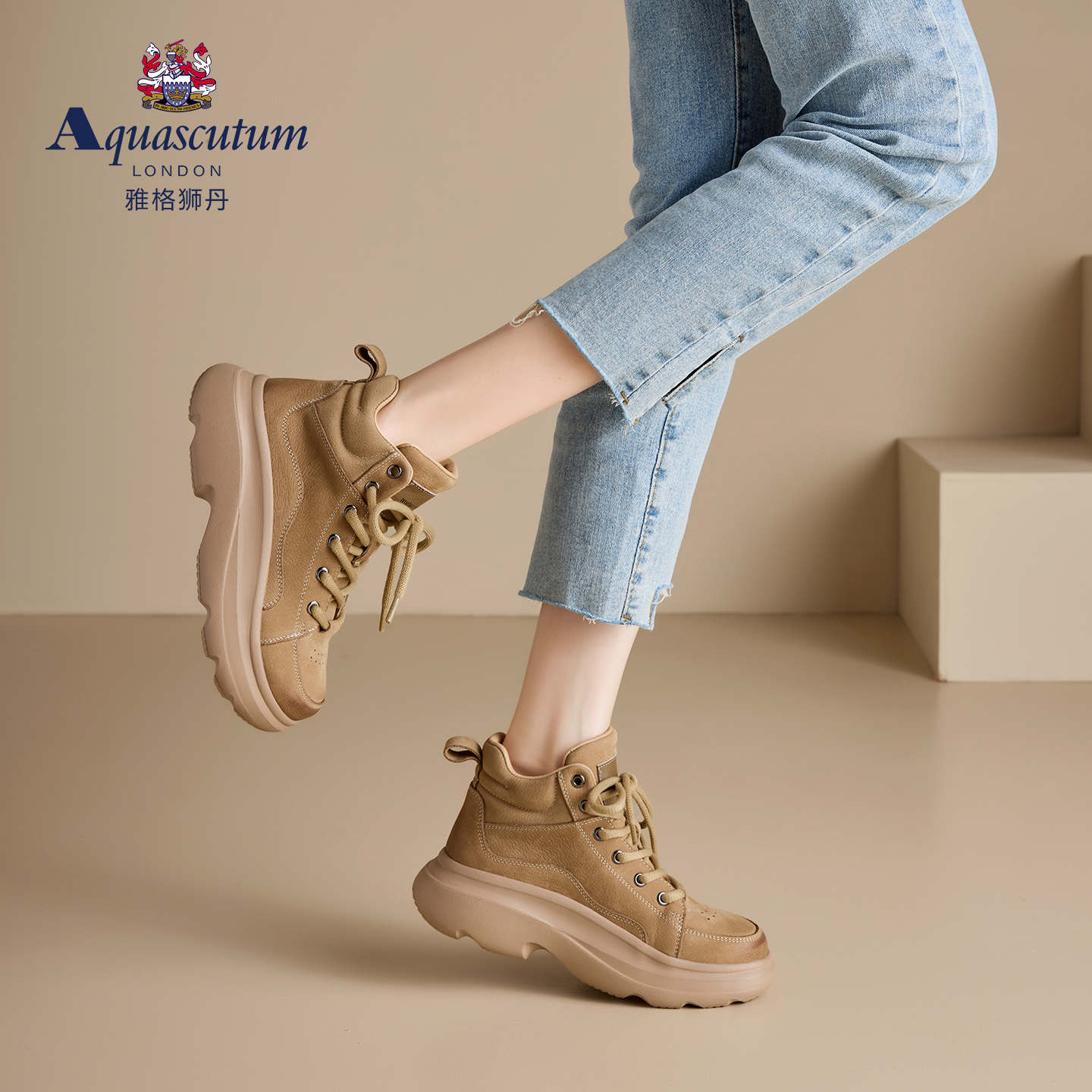 高帮运动厚底鞋 女休闲系带女鞋 雅格狮丹2025秋冬新款 Aquascutum