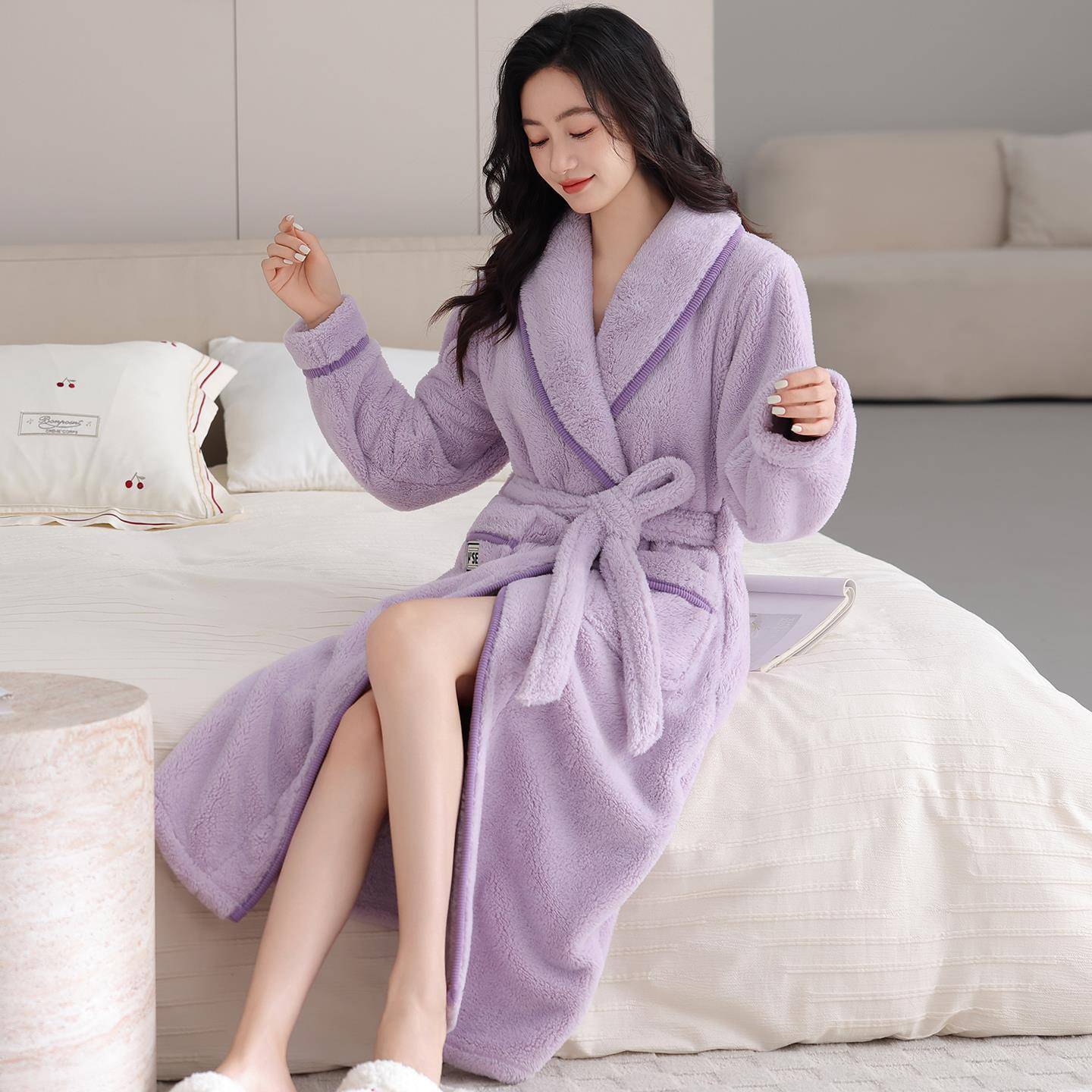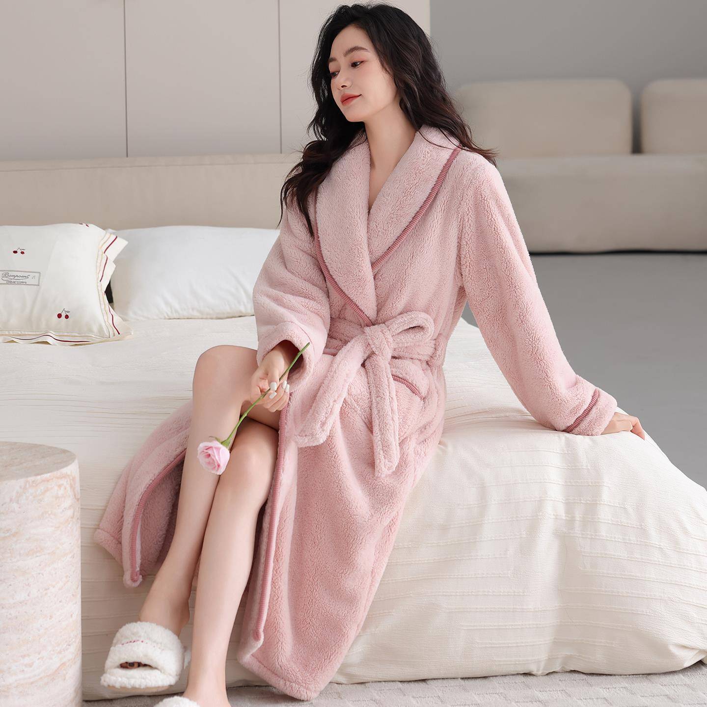 秋冬珊瑚绒睡袍女秋冬季 浴袍睡衣冬天加绒法1009c 加厚保暖中长款