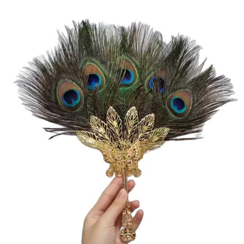 古风孔雀羽毛团扇汉服舞蹈表演掌扇道具扇百搭手持扇中国风小扇子