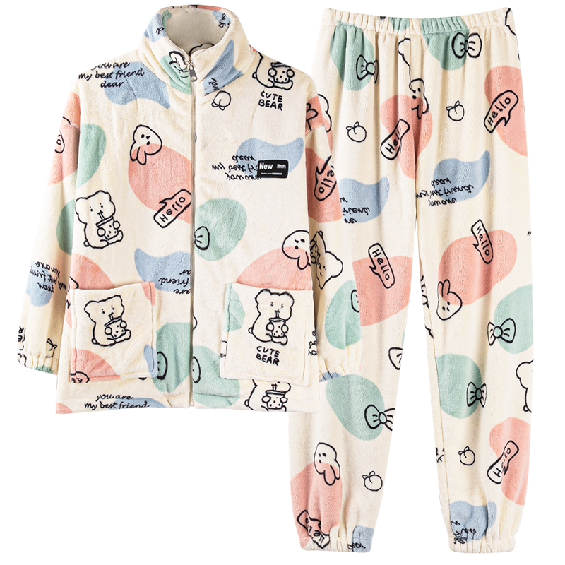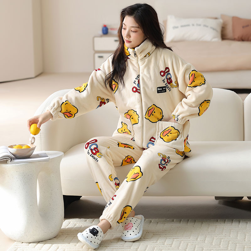 婷美珊瑚绒睡衣女秋冬加厚加绒保暖2025新款 可外穿家居服套装