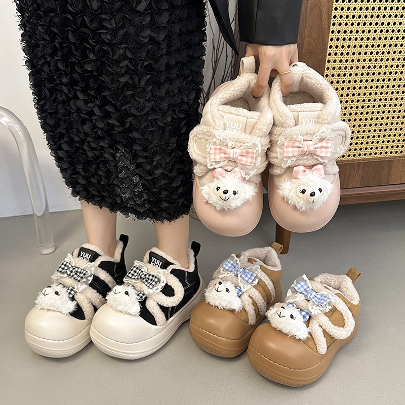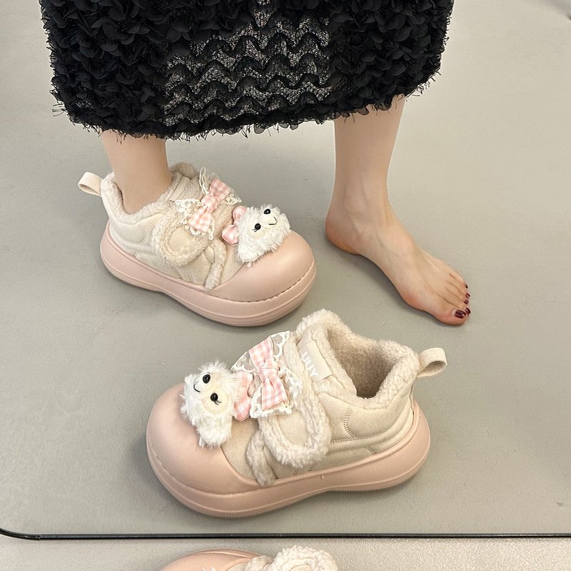 外穿软厚底防滑包跟鞋 少女心可爱乖巧减龄雪莉玫加绒棉鞋 女秋冬季
