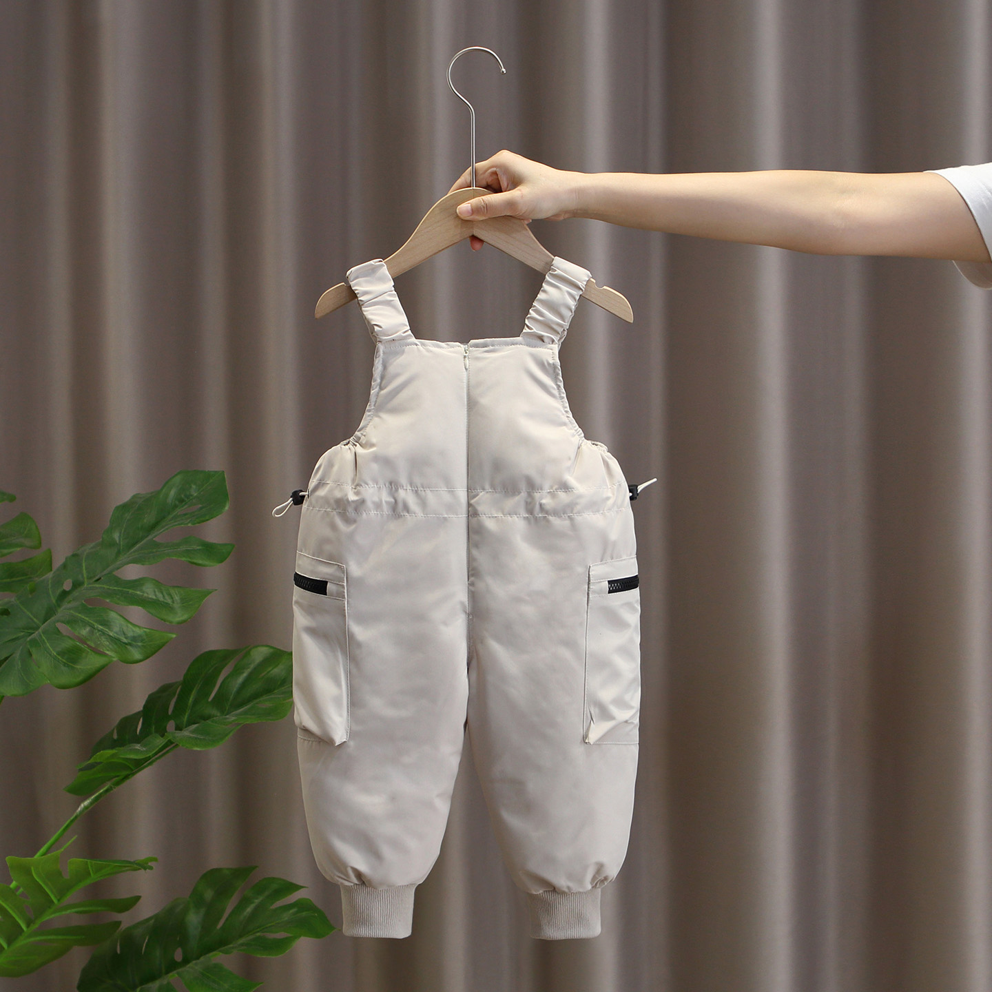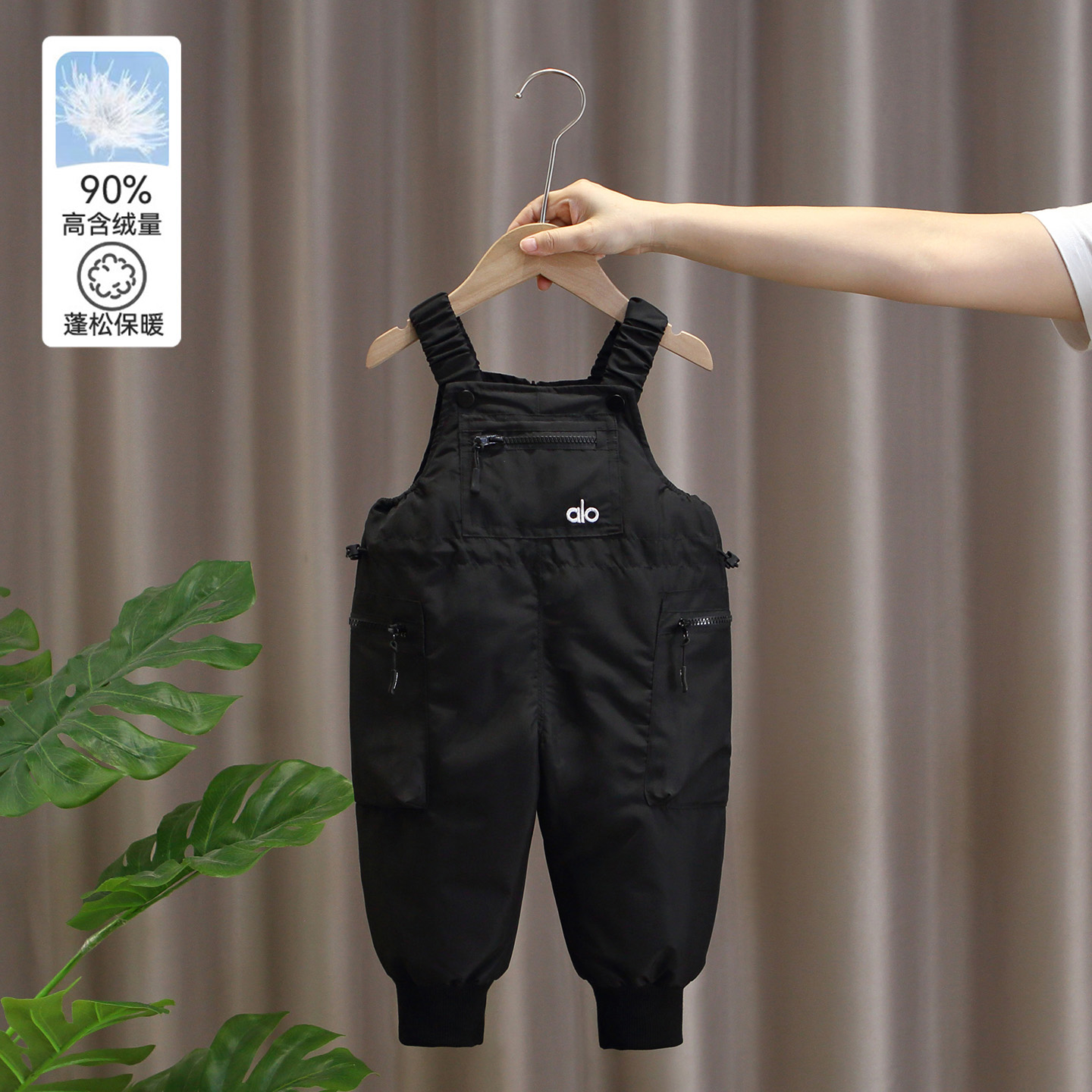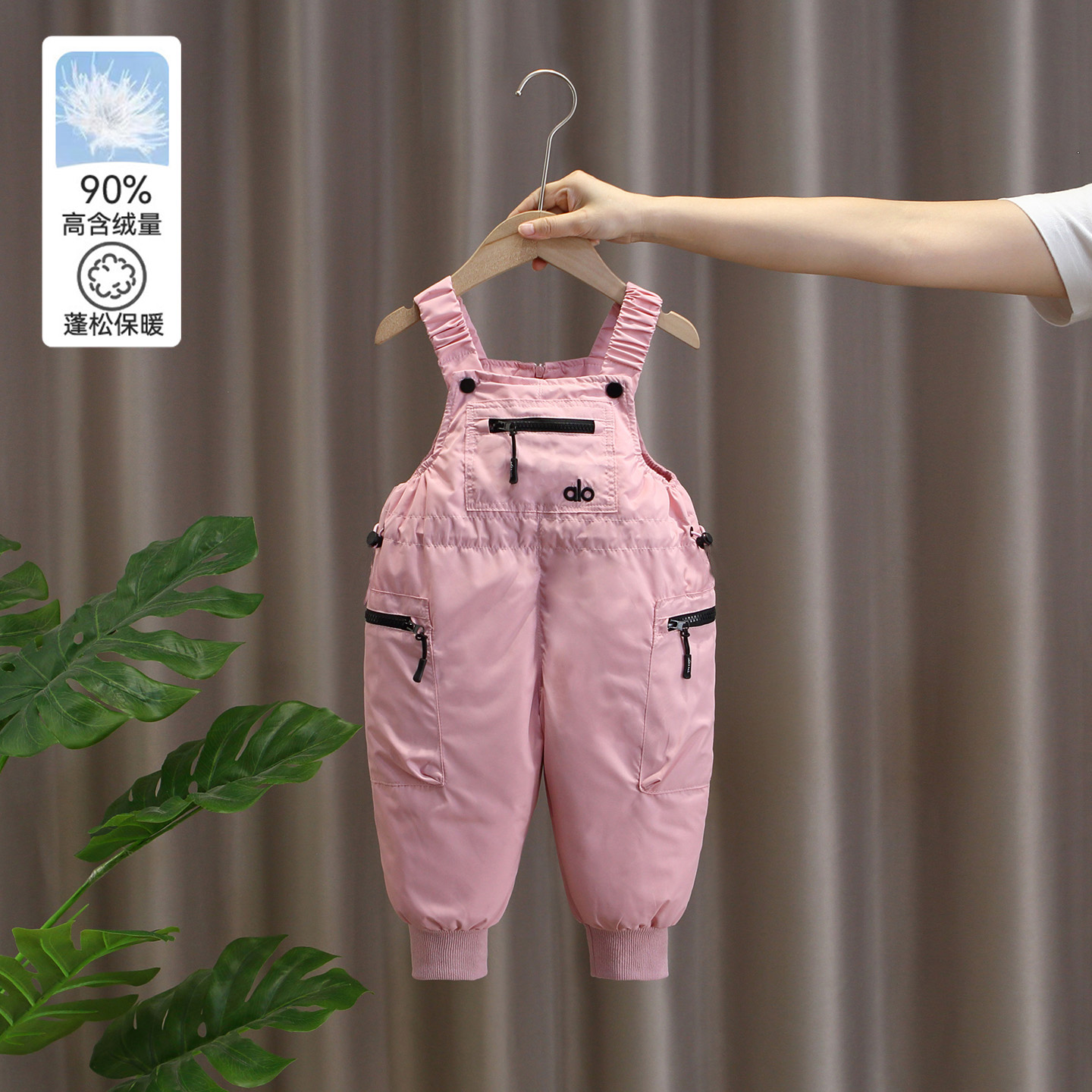 儿童外穿滑雪耐脏女宝宝加厚保暖白鸭绒连身裤 男童羽绒背带裤 冬季