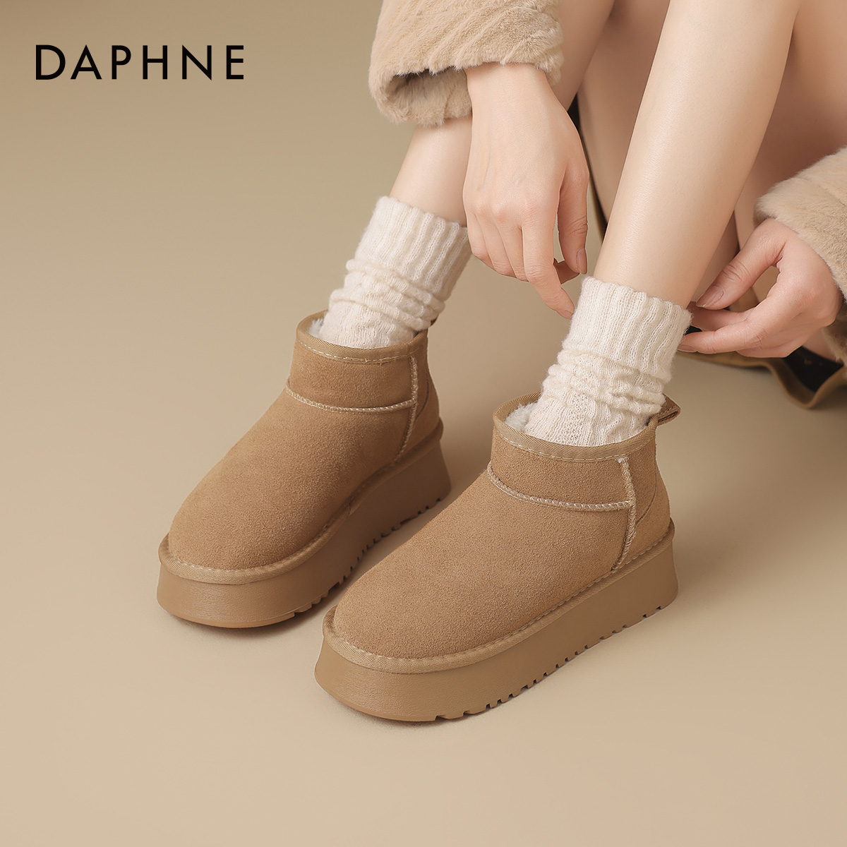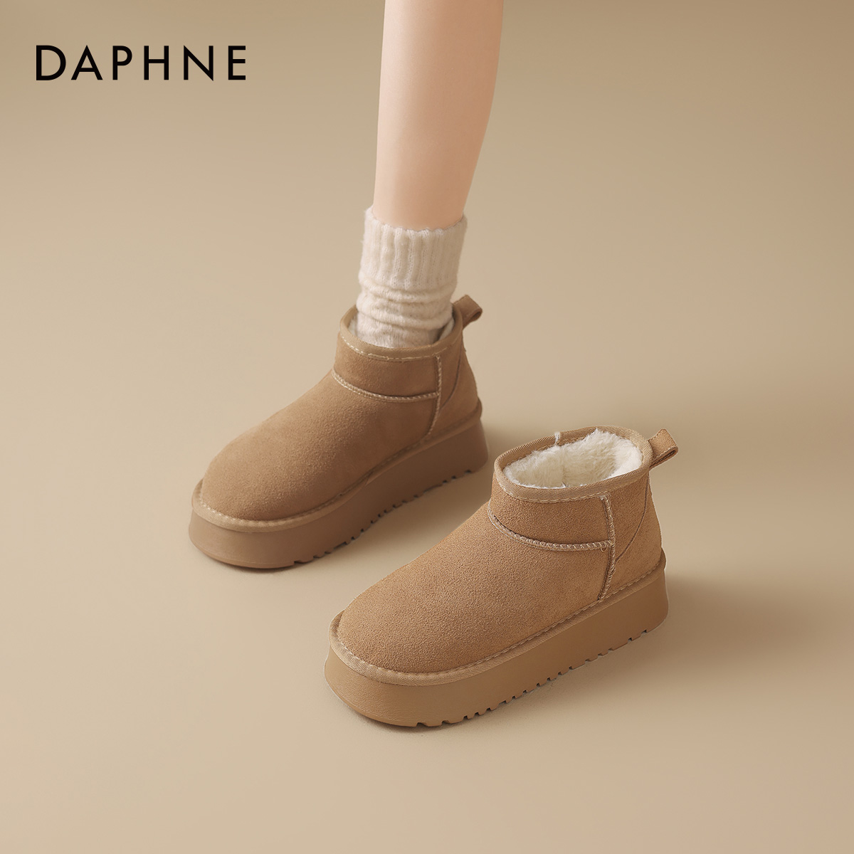 棉靴子 加绒保暖短靴踝靴东北棉鞋 达芙妮厚底雪地靴女2025新款 冬季