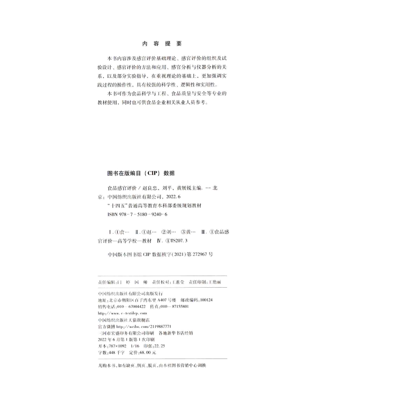 食品感官评价赵良忠大学教材中国纺织出版 社新华书店正版