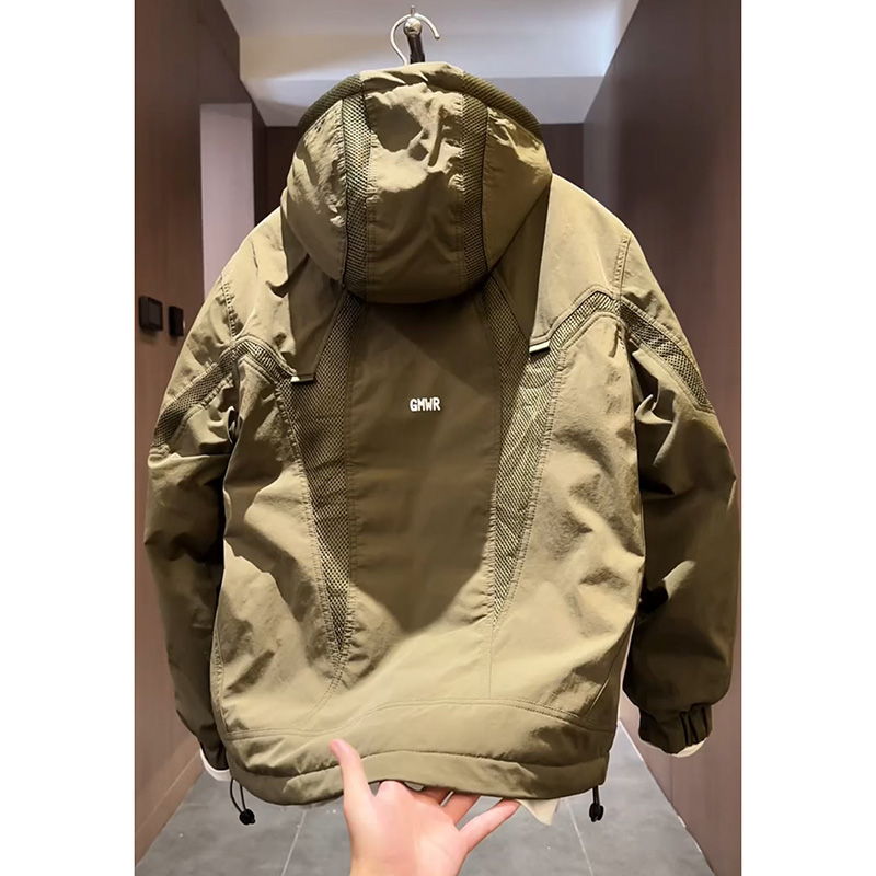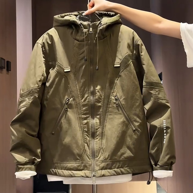 2025秋冬加厚宽松连帽夹克男潮流夹棉外套闲工装 运动户外保暖棉服