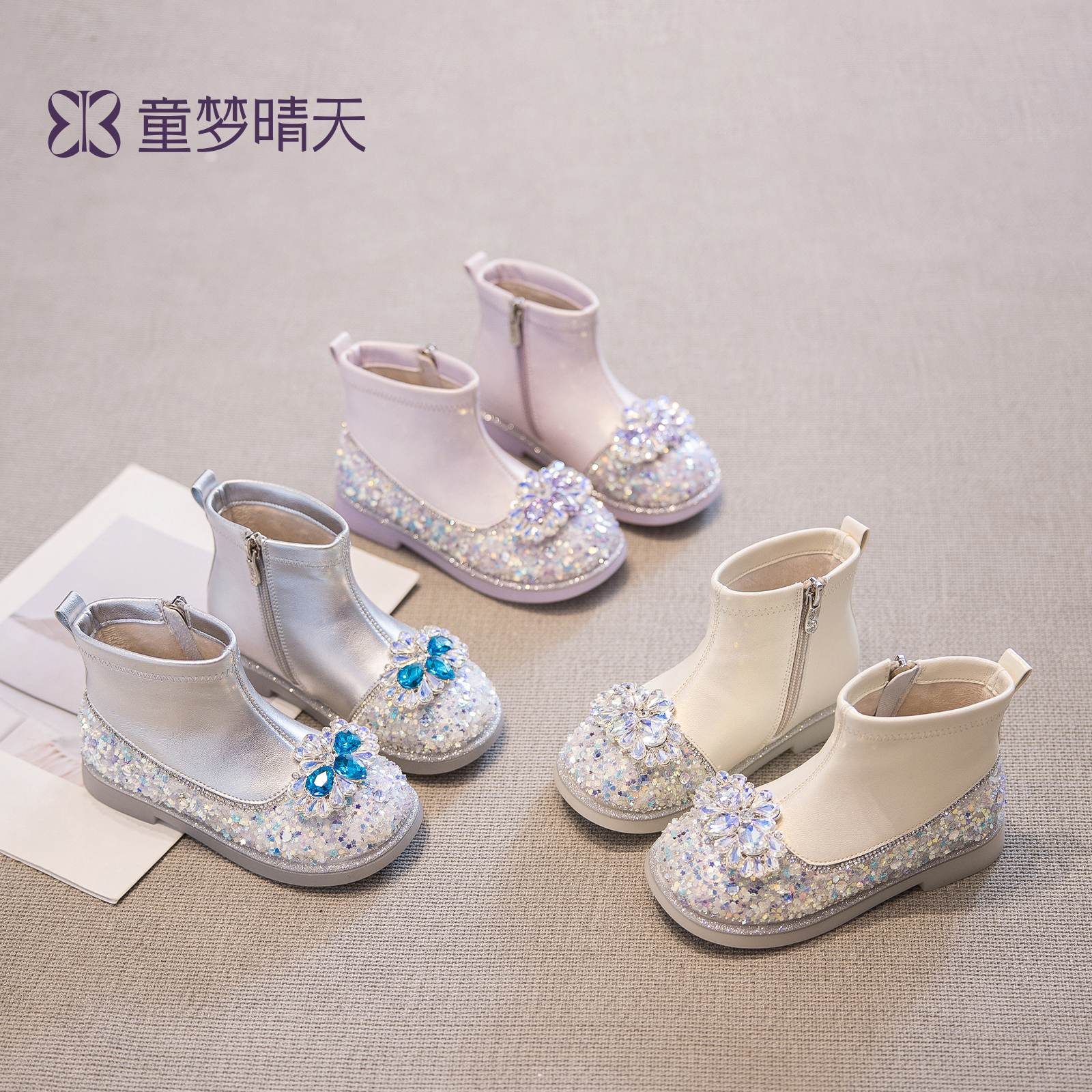 童梦晴天女童公主靴2025新款 秋冬儿童加绒靴子女宝二棉小短靴皮鞋