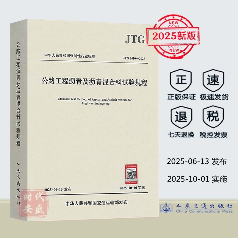3410 2025 2011 正版 应用指南 E20 JTG 代替 公路工程沥青及沥青混合料试验规程