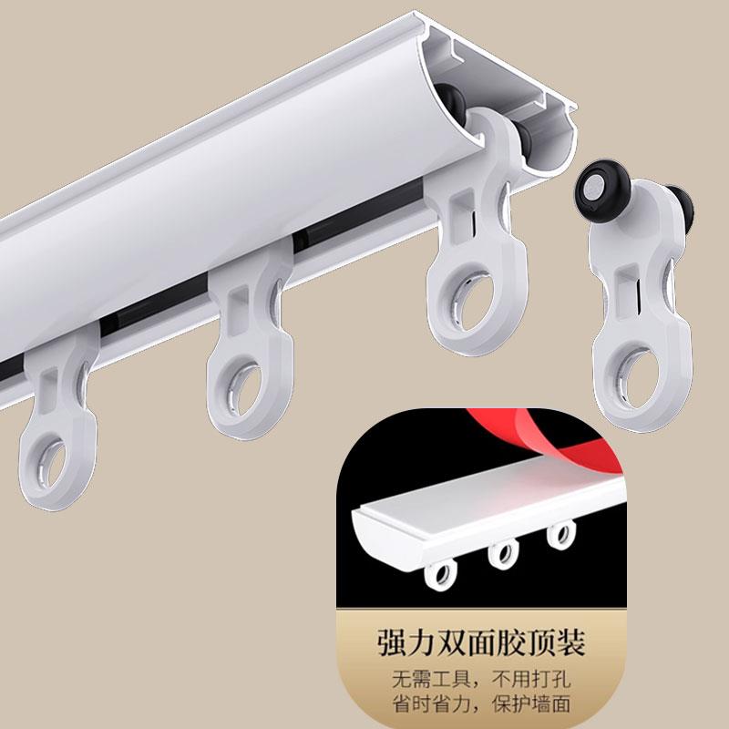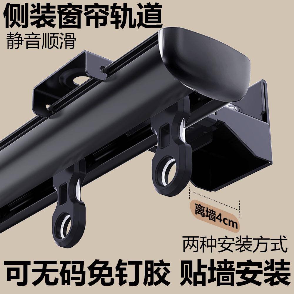 侧装 导轨铝合金静音飘窗免打孔隐形滑轮单双轨 窗帘轨道超薄挂钩式