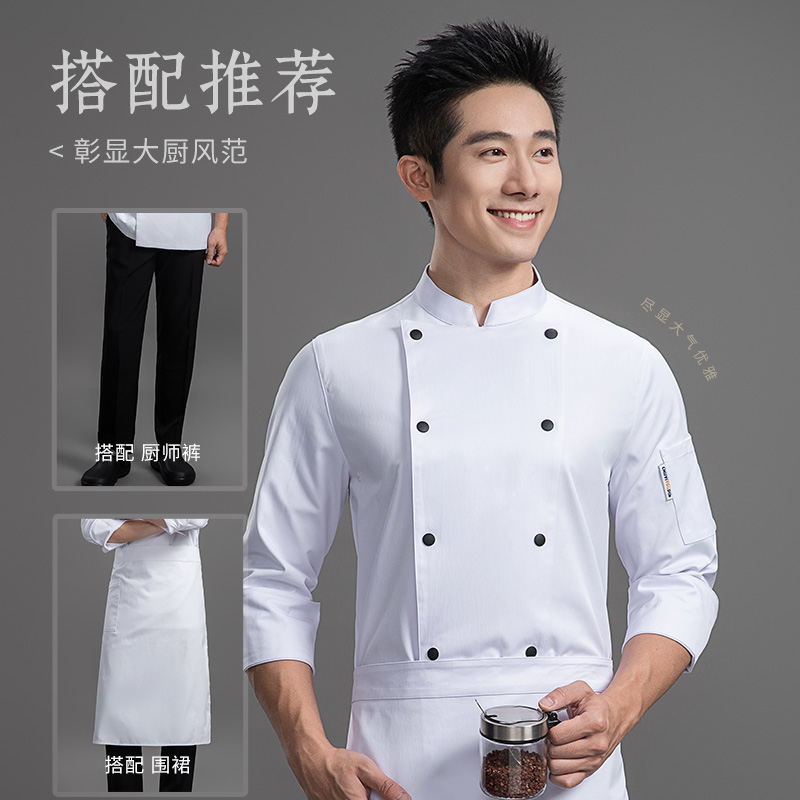 高档餐饮厨师工作服男长袖 酒店西餐厅饭店食堂厨房烘焙工衣 秋冬装