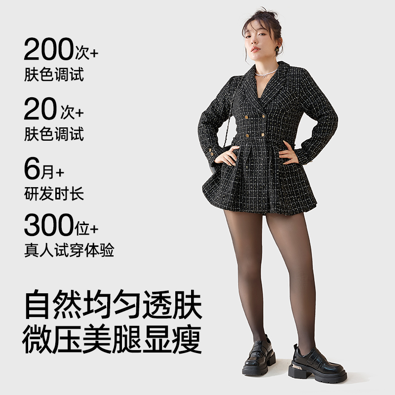 袜 胖mm高腰秋冬加绒外穿连裤 大码 黑透肤光腿神器水光袜一体打底裤