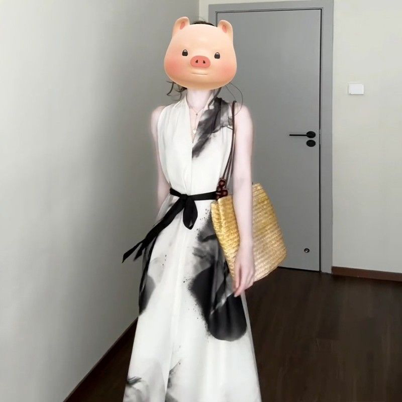 KEIKO 掐腰背带长裙子 高端提花油画风吊带连衣裙2025秋冬穿搭法式